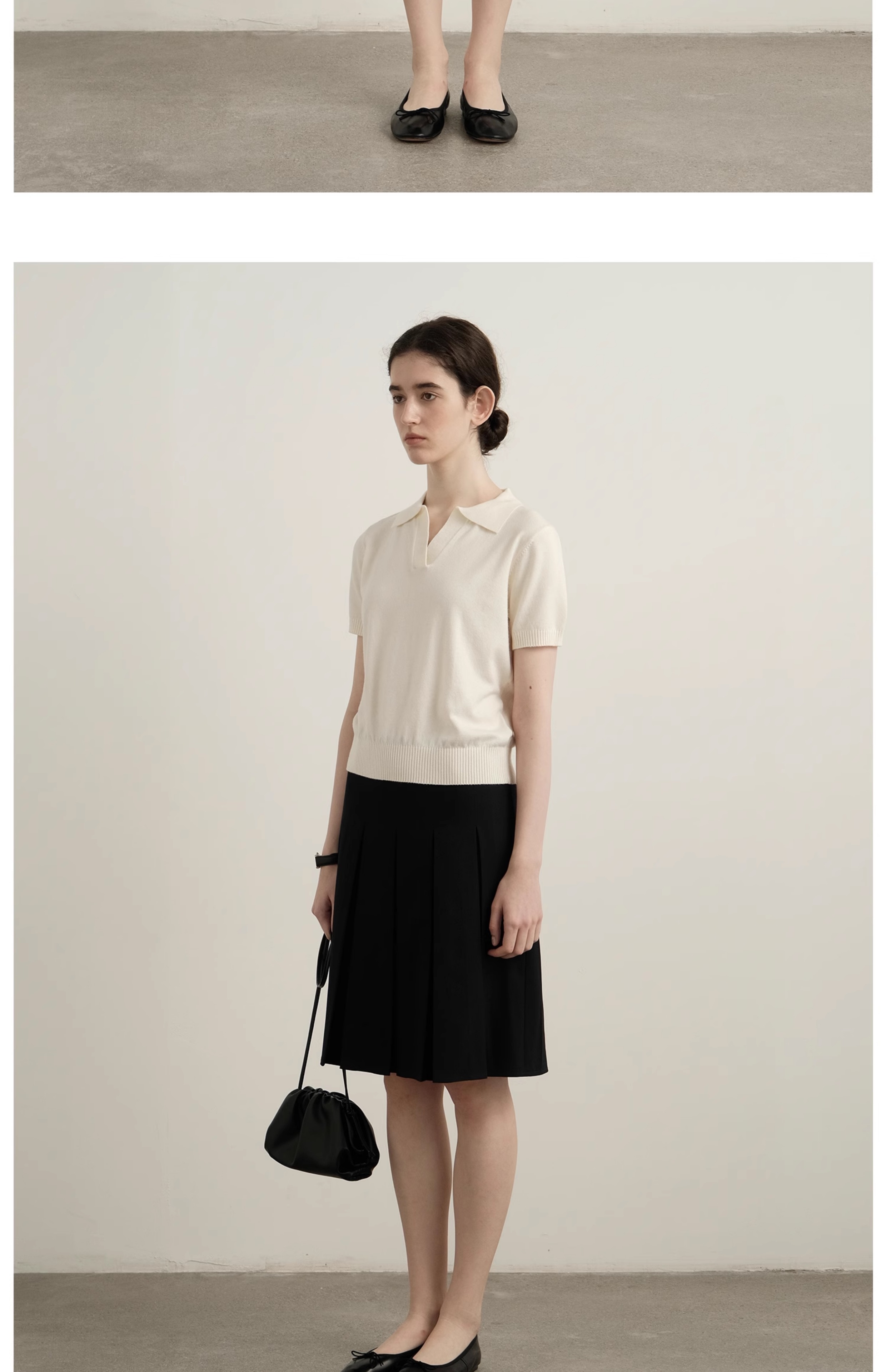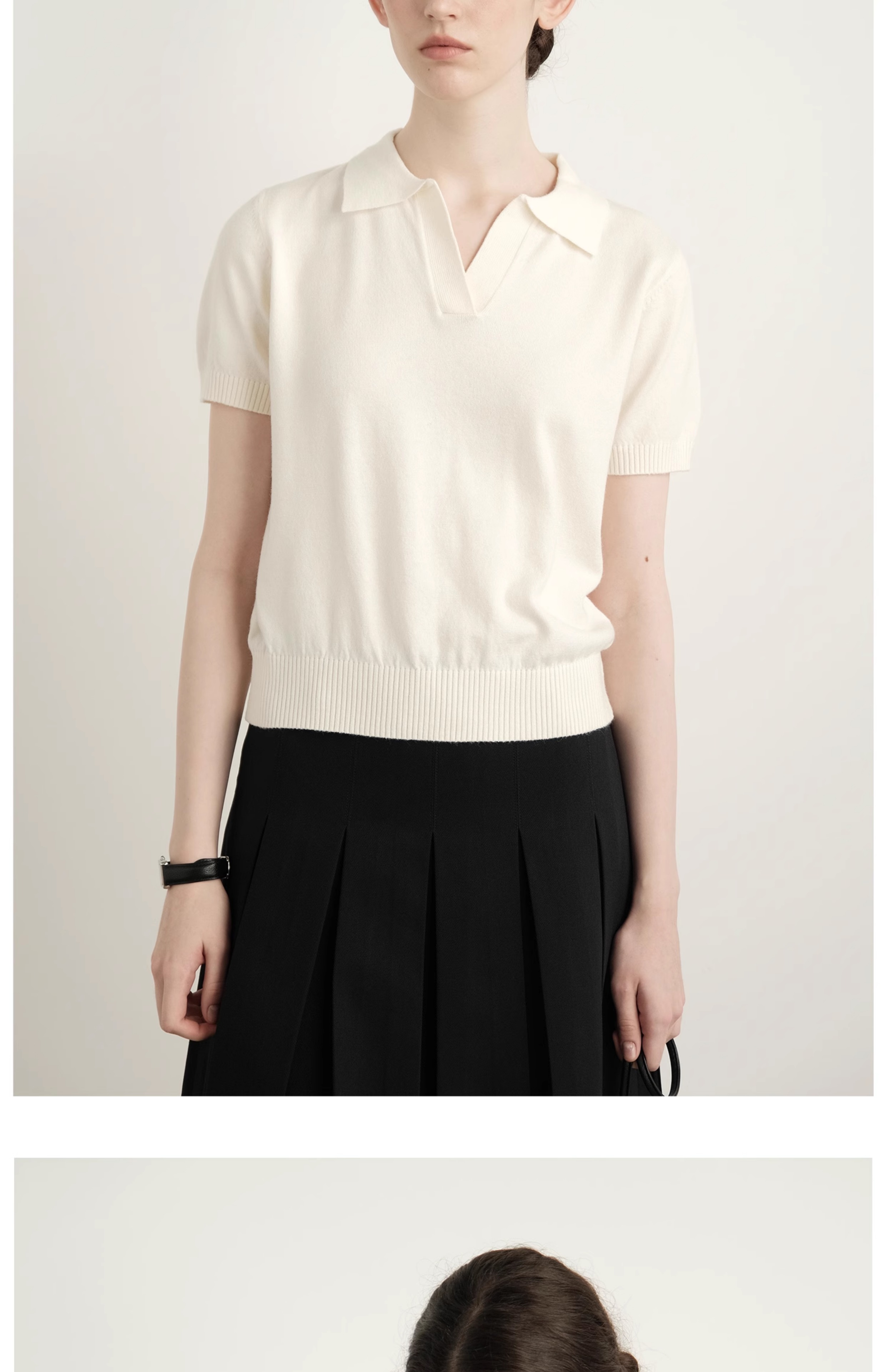LINHUOES复古白色polo衫短袖针织衫夏百搭通勤休闲毛衣t恤上衣女