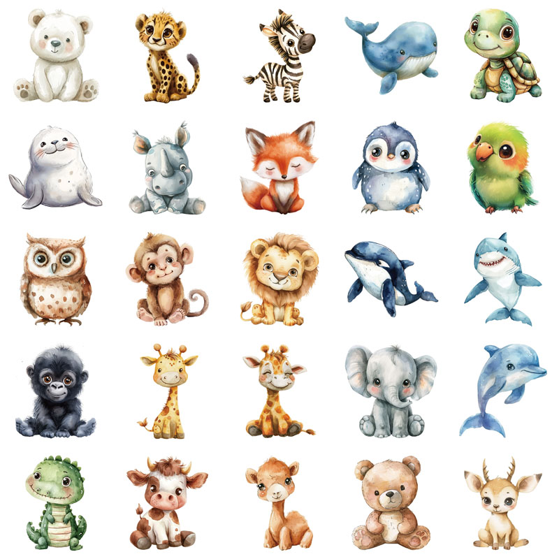 50张水彩动物贴纸不重复小狗小鸟小羊笔记本电脑装饰跨境diy贴画