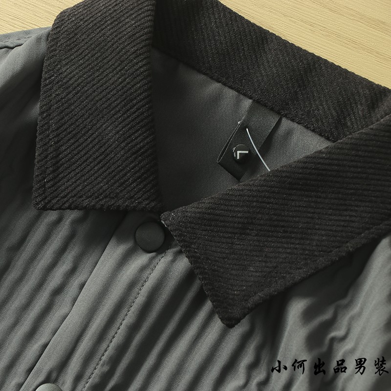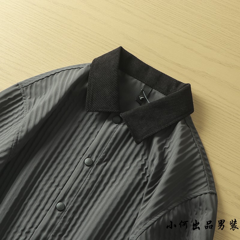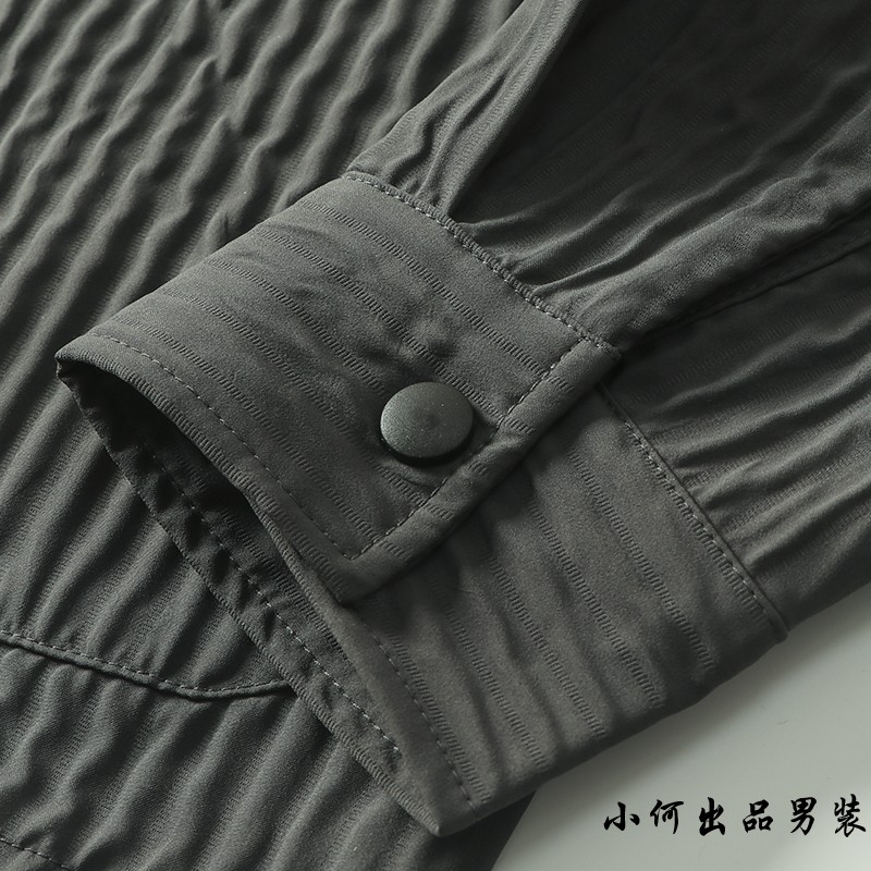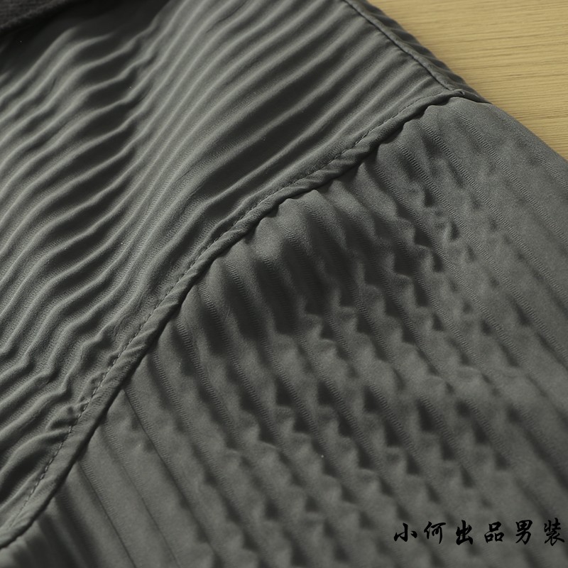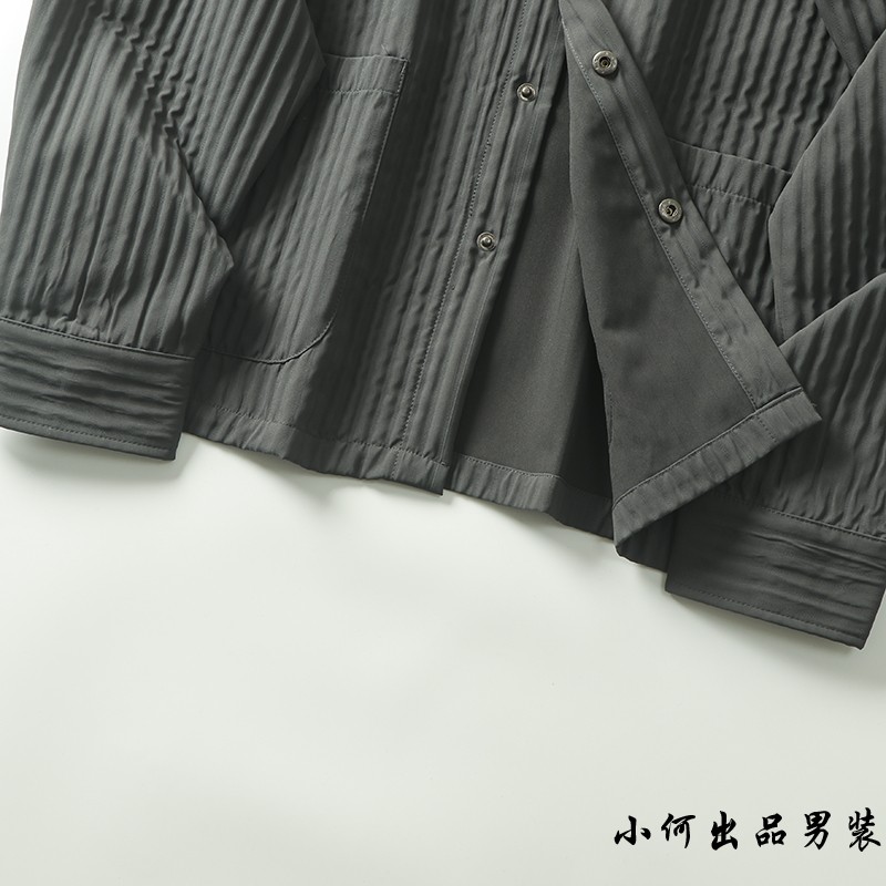小何自留 高级感三宅风 春季男士褶皱条纹痞帅休闲翻领外套