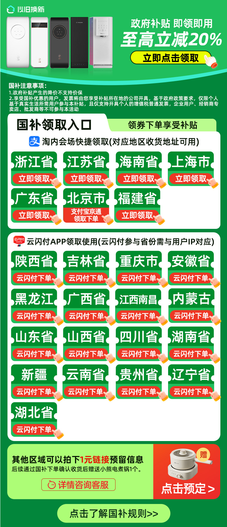 政府补贴沁园净水器家用直饮机厨房自来水过滤器饮水机官方1000G