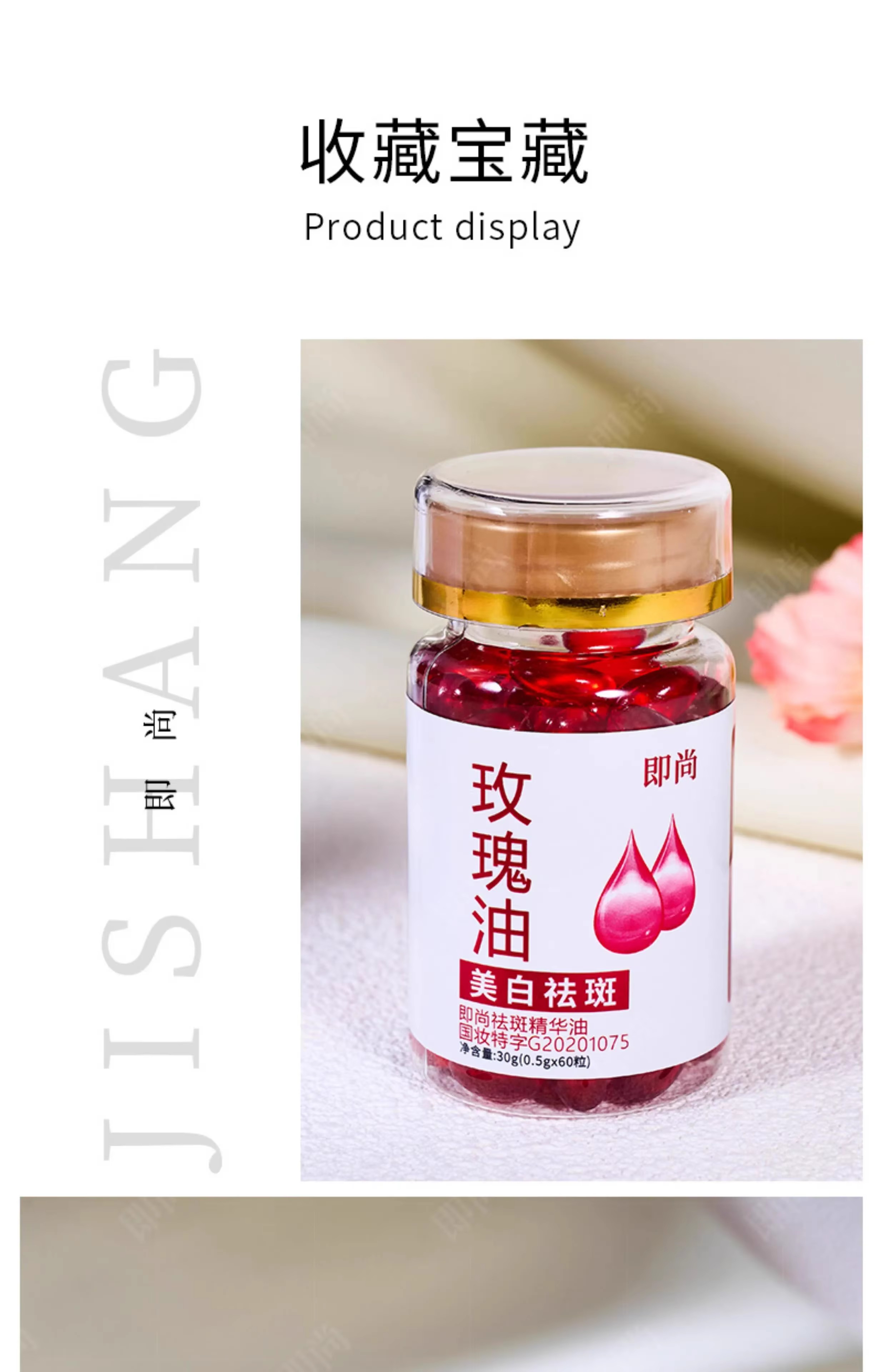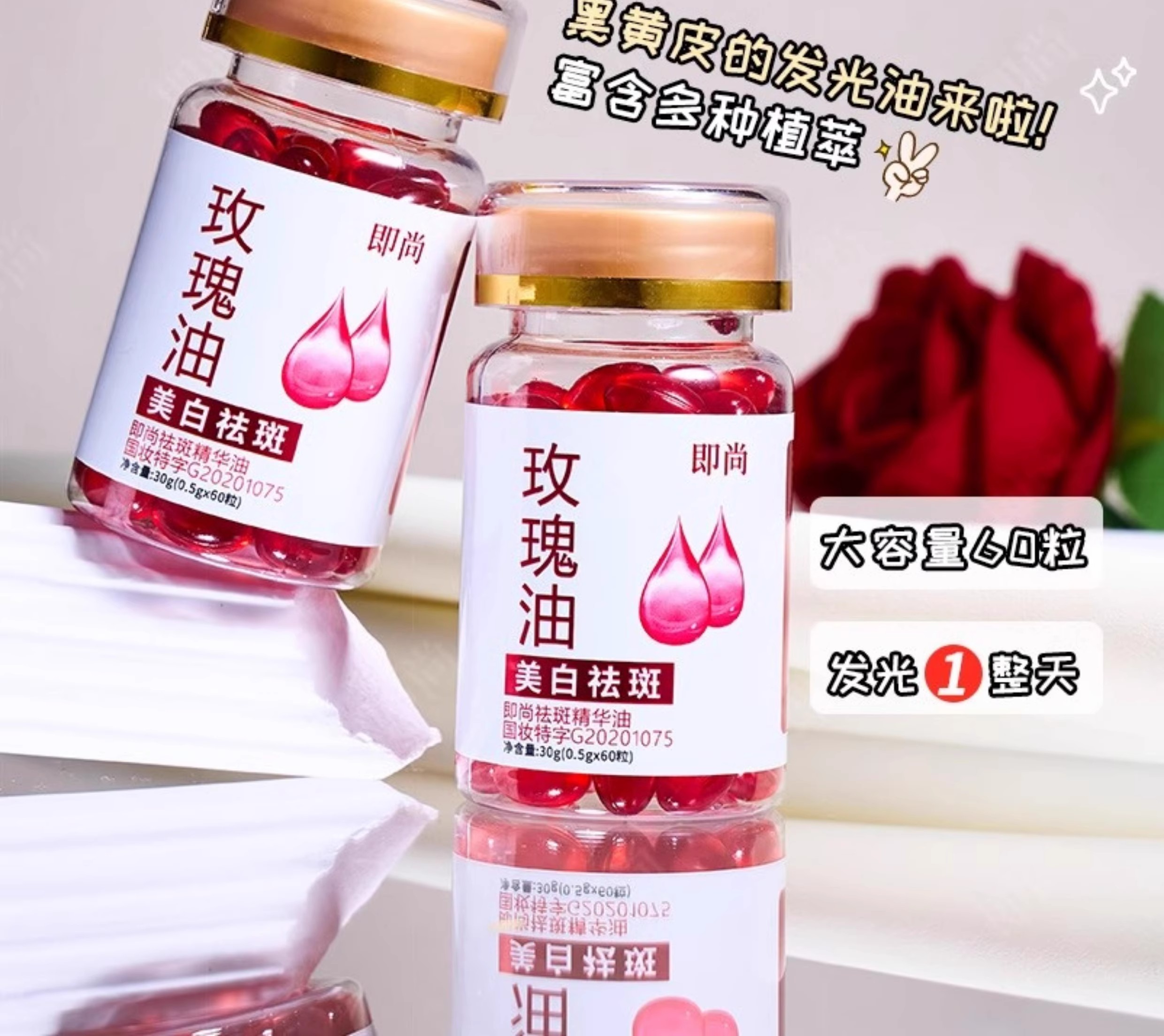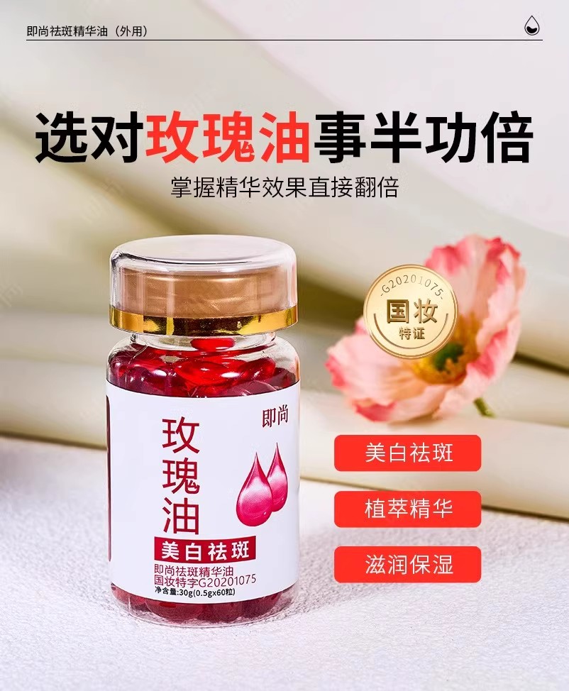 胶原蛋白玫瑰油精油60粒瓶可做油敷美白祛斑国妆特字老国货溶斑油