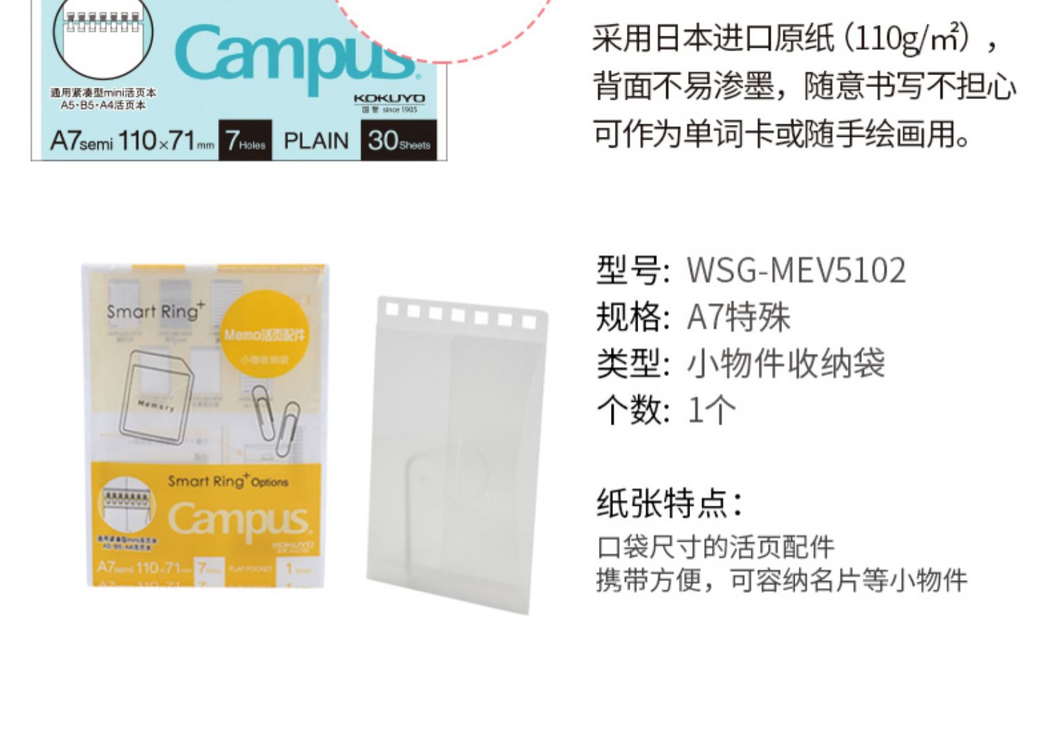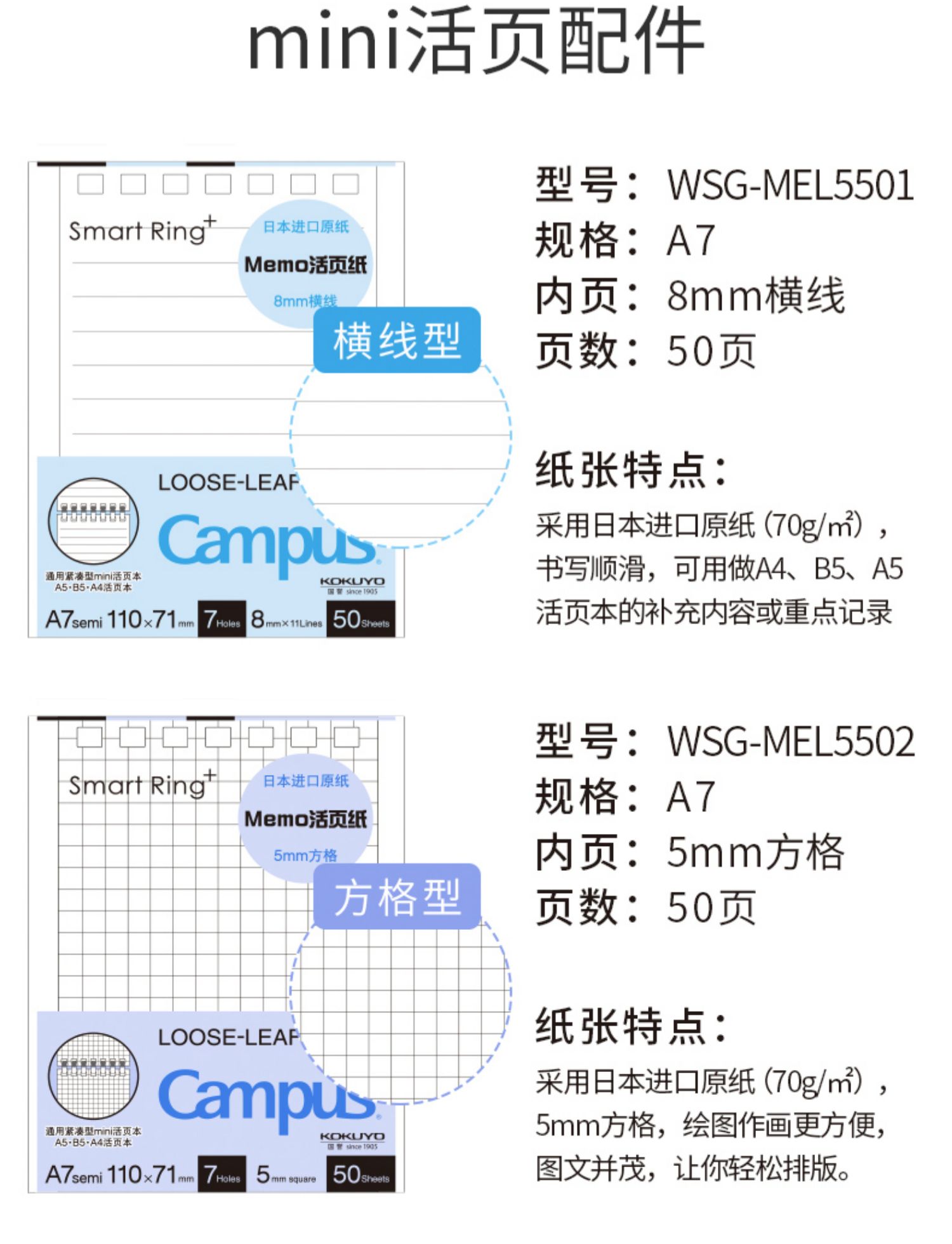 国誉轻薄线圈A7迷你活页本随身上翻页口袋笔记本可拆卸速记便签本