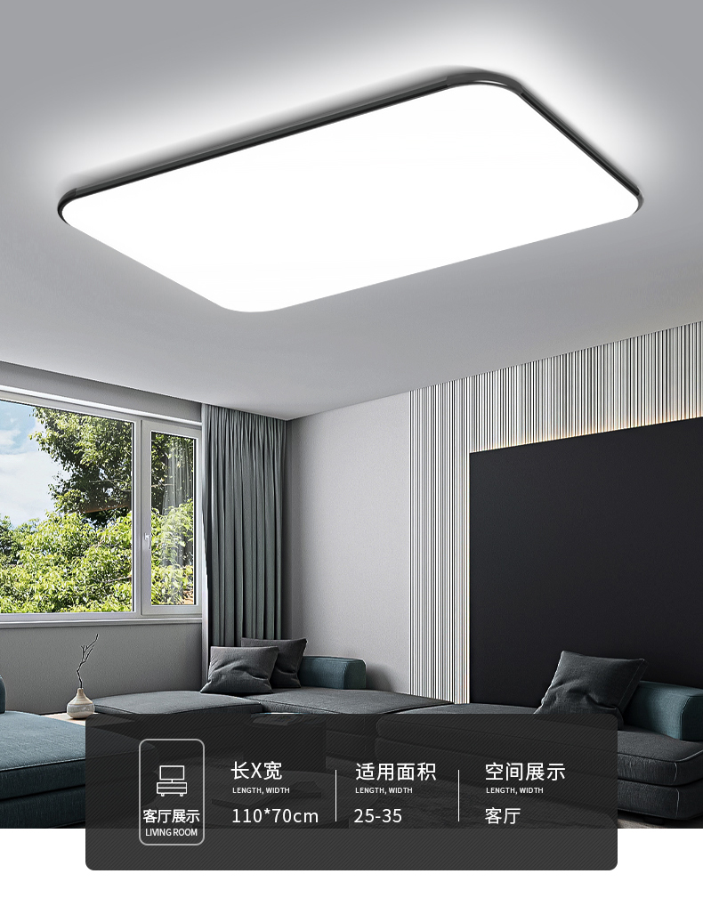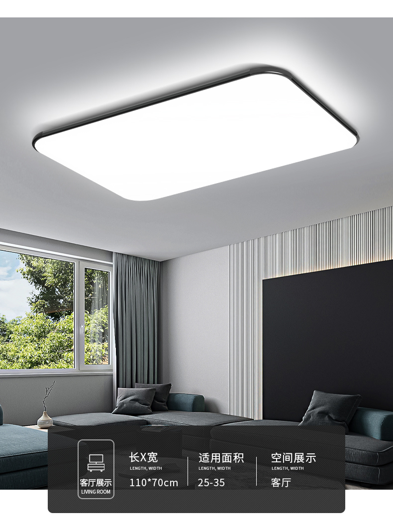 客厅灯长方形简约现代大气超薄led吸顶灯家用卧室灯创意灯饰灯具