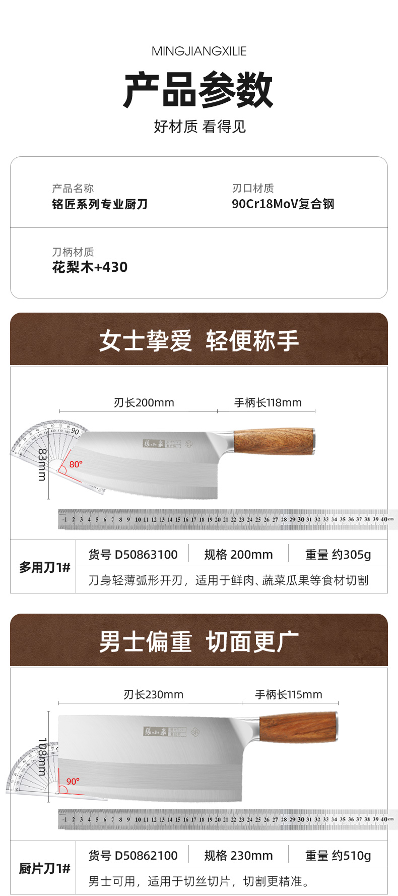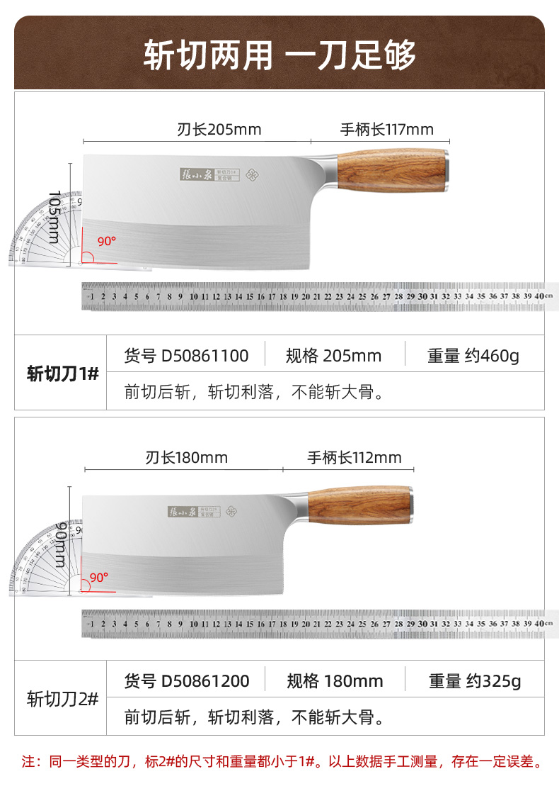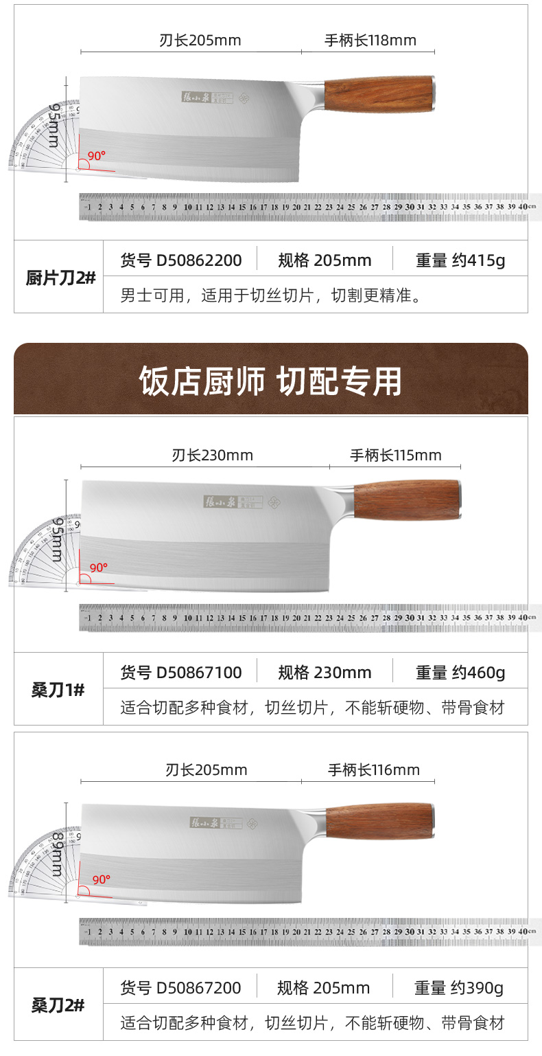 张小泉菜刀 家用厨师专用超快锋利切片刀手工厨房切斩肉刀具 厨房