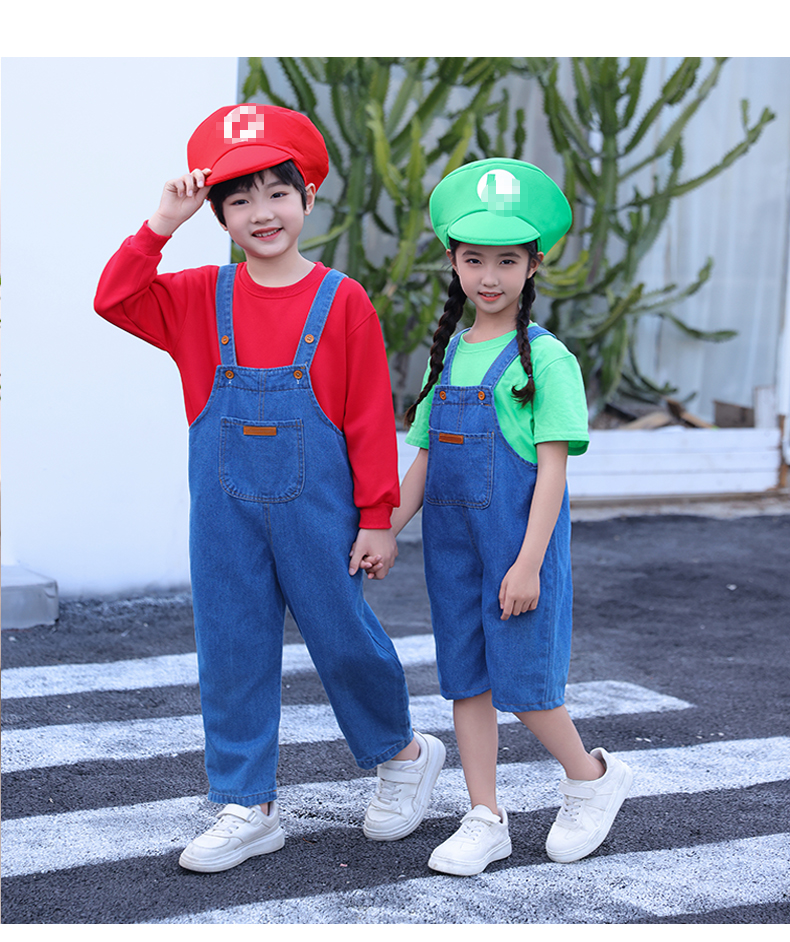 马里奥cos衣服儿童牛仔背带裤演出服亲子运动会毕业季舞台服套装