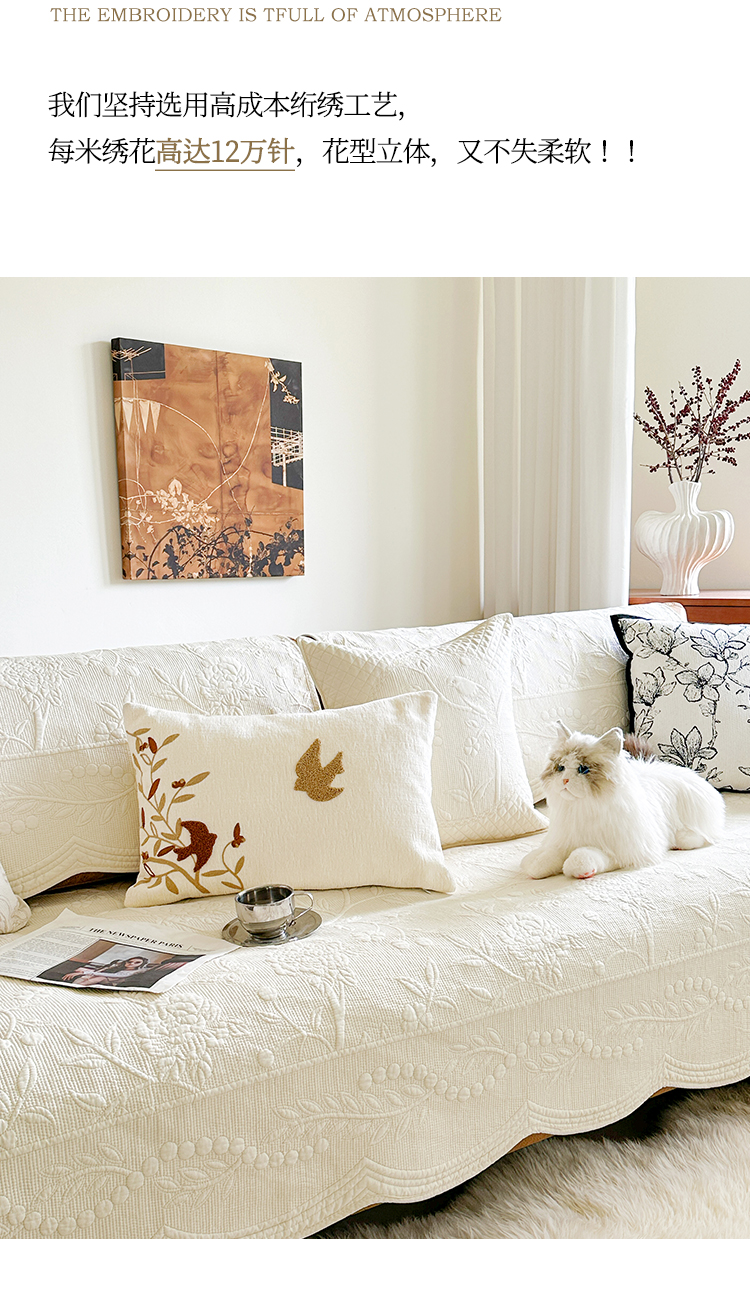 蔓越家 春日莺花 高级感全棉沙发垫客厅通用沙发套罩巾纯棉坐垫子