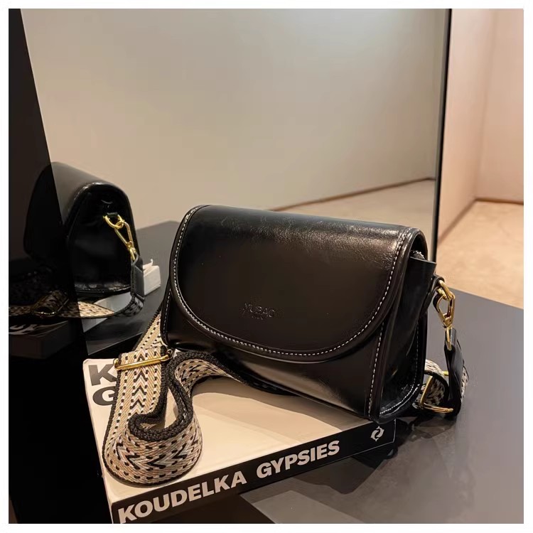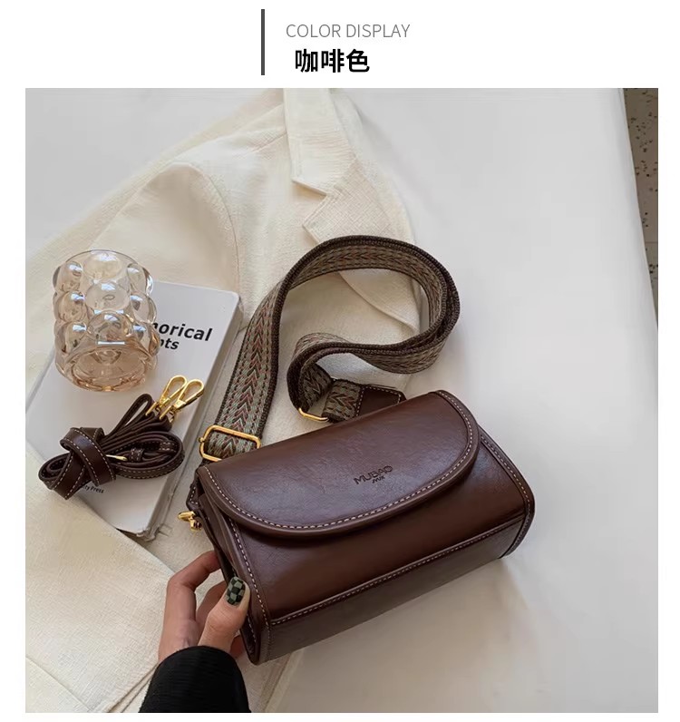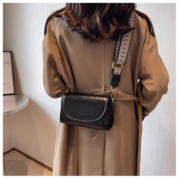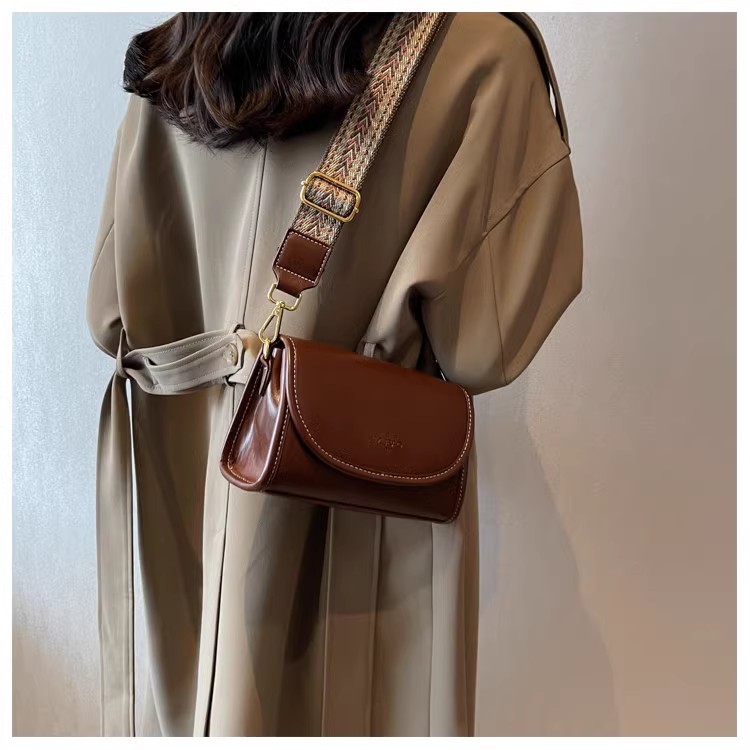 香港代购真皮包包女2025夏季新款百搭单肩斜挎包宽肩带时尚小方包