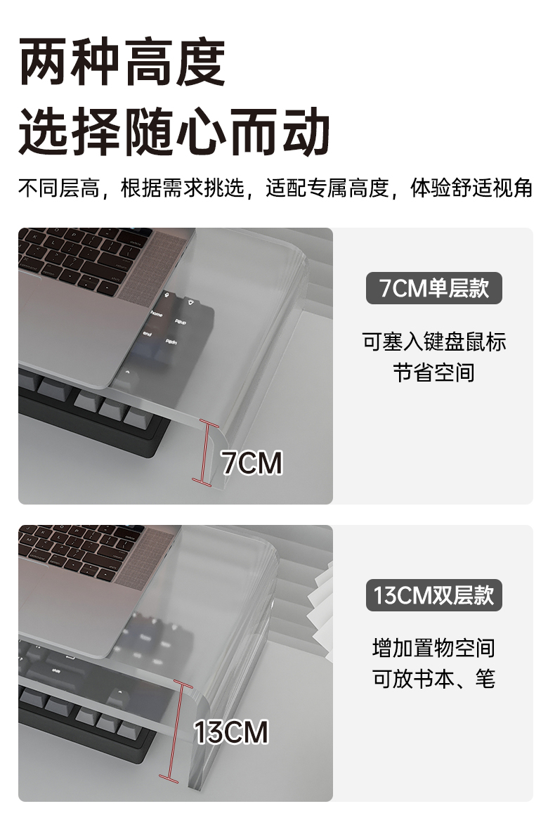 亚克力增高架显示器支架工位电脑台式收纳笔记本办公室桌面置物架