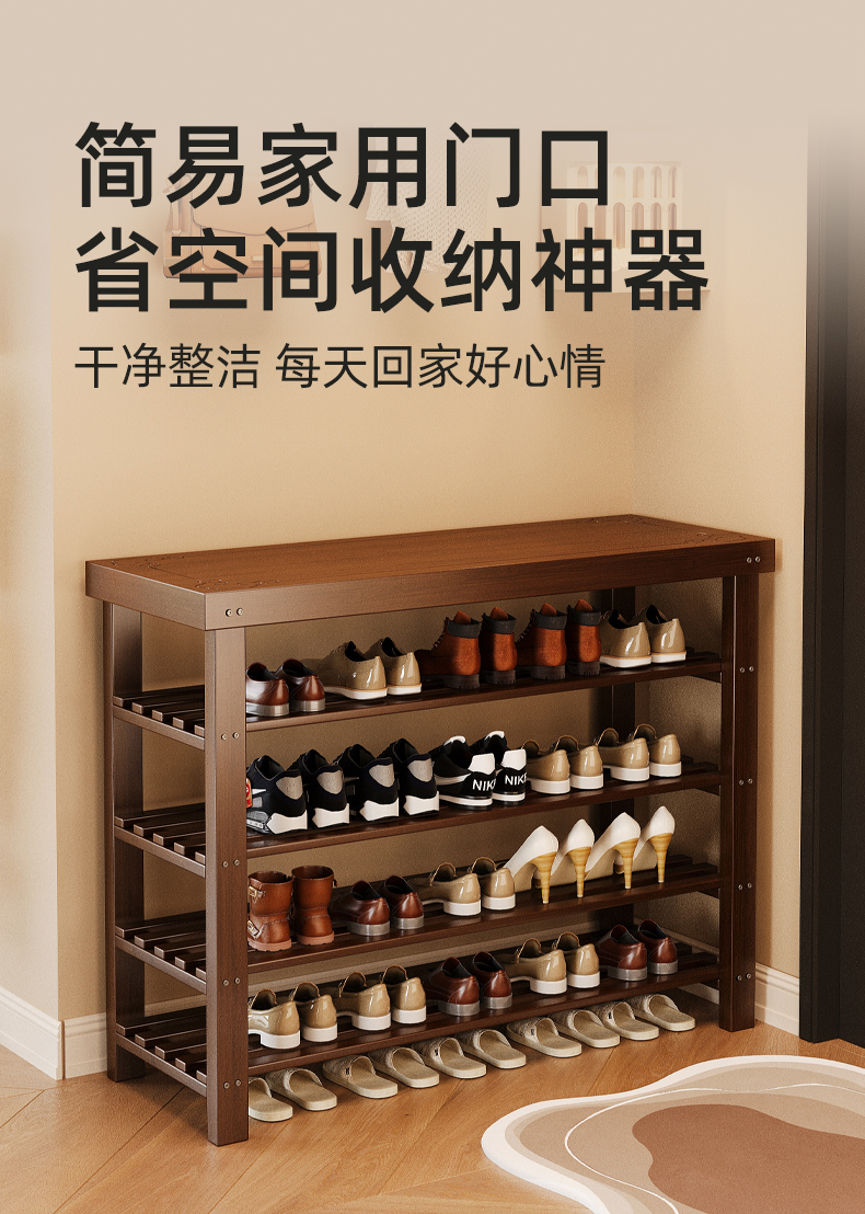鞋架家用门口可坐多层防尘鞋柜置物架简易现代入户实木收纳换鞋凳