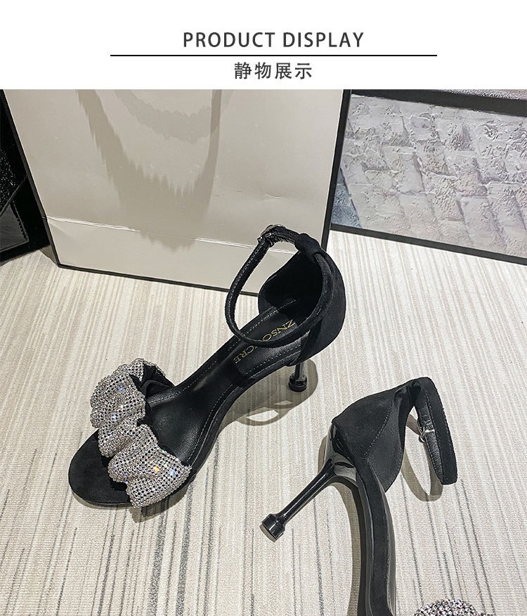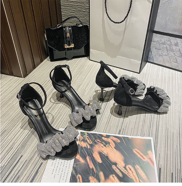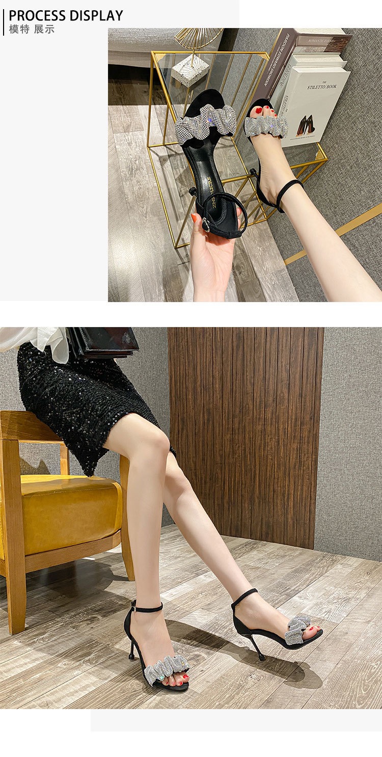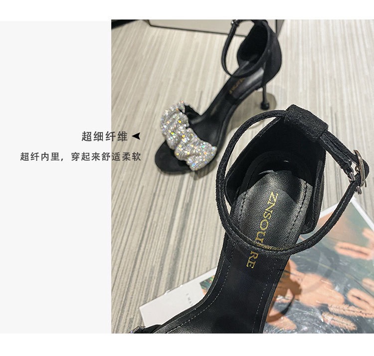 小码313233水钻一字带凉鞋女2025年夏季新款细跟高跟鞋大码41一43