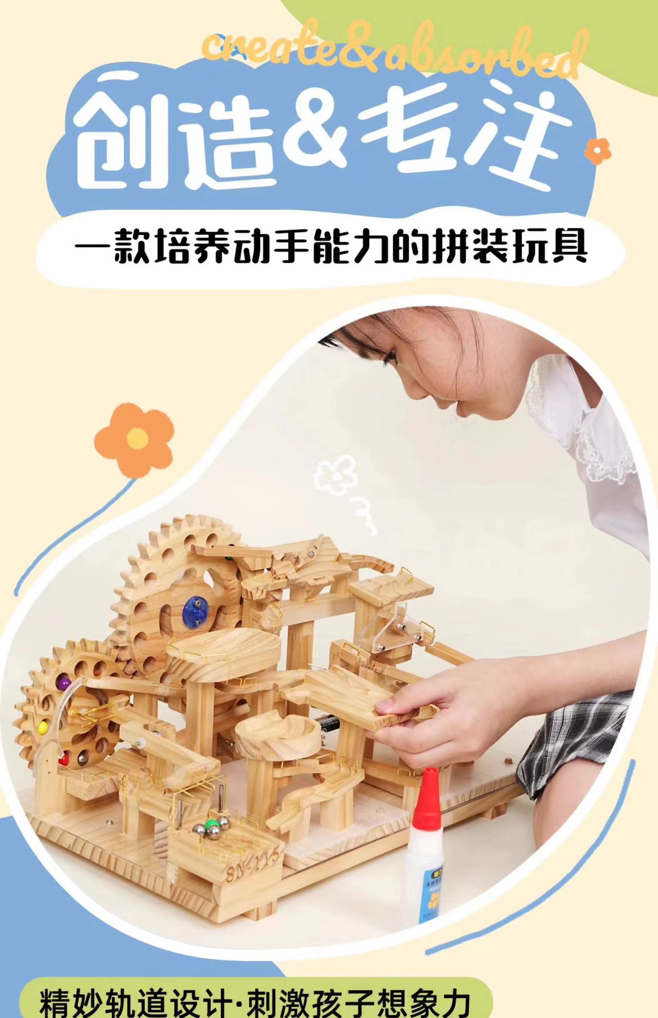益智拼装模型高难度木质机械滚珠积木男女孩DIY手工玩具生日礼物