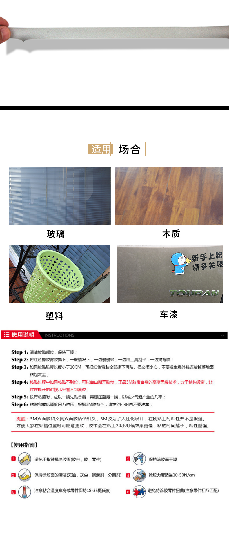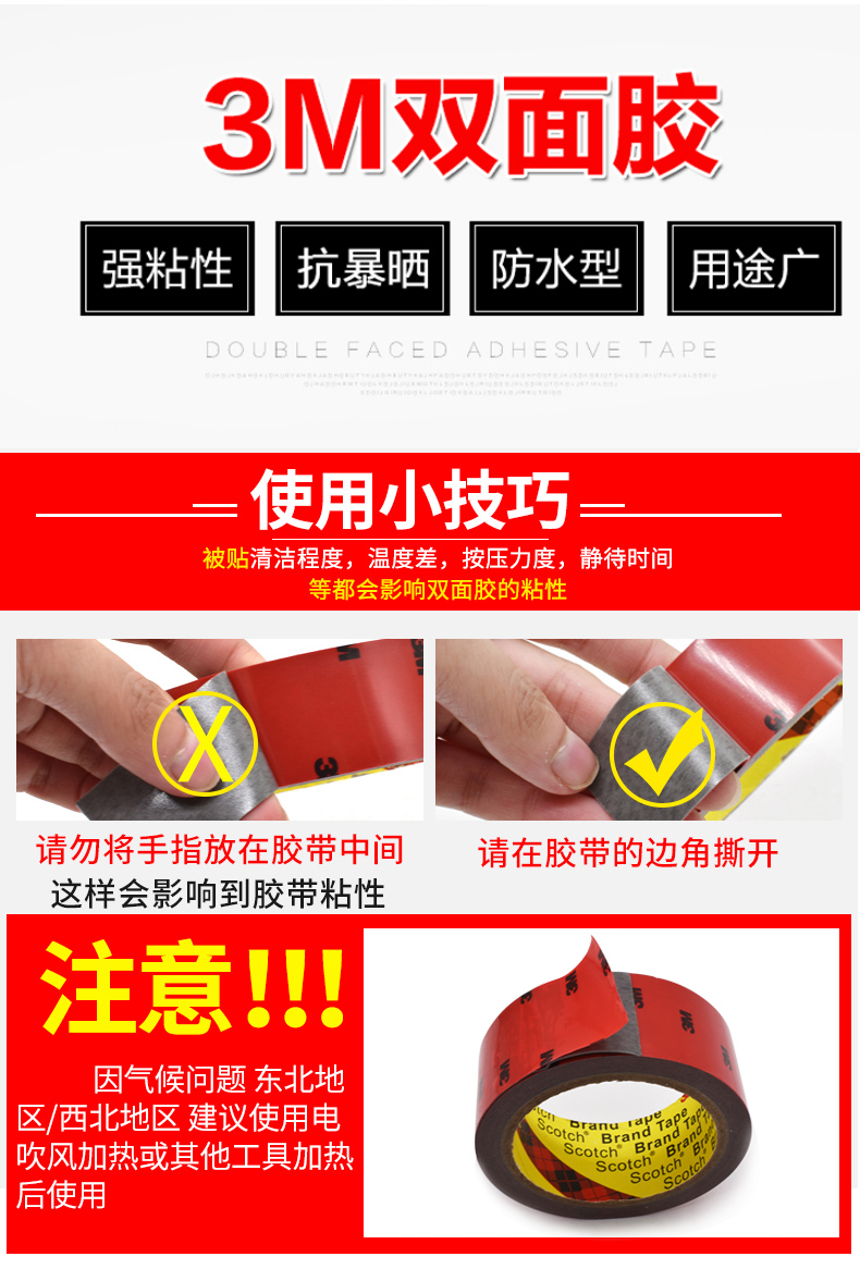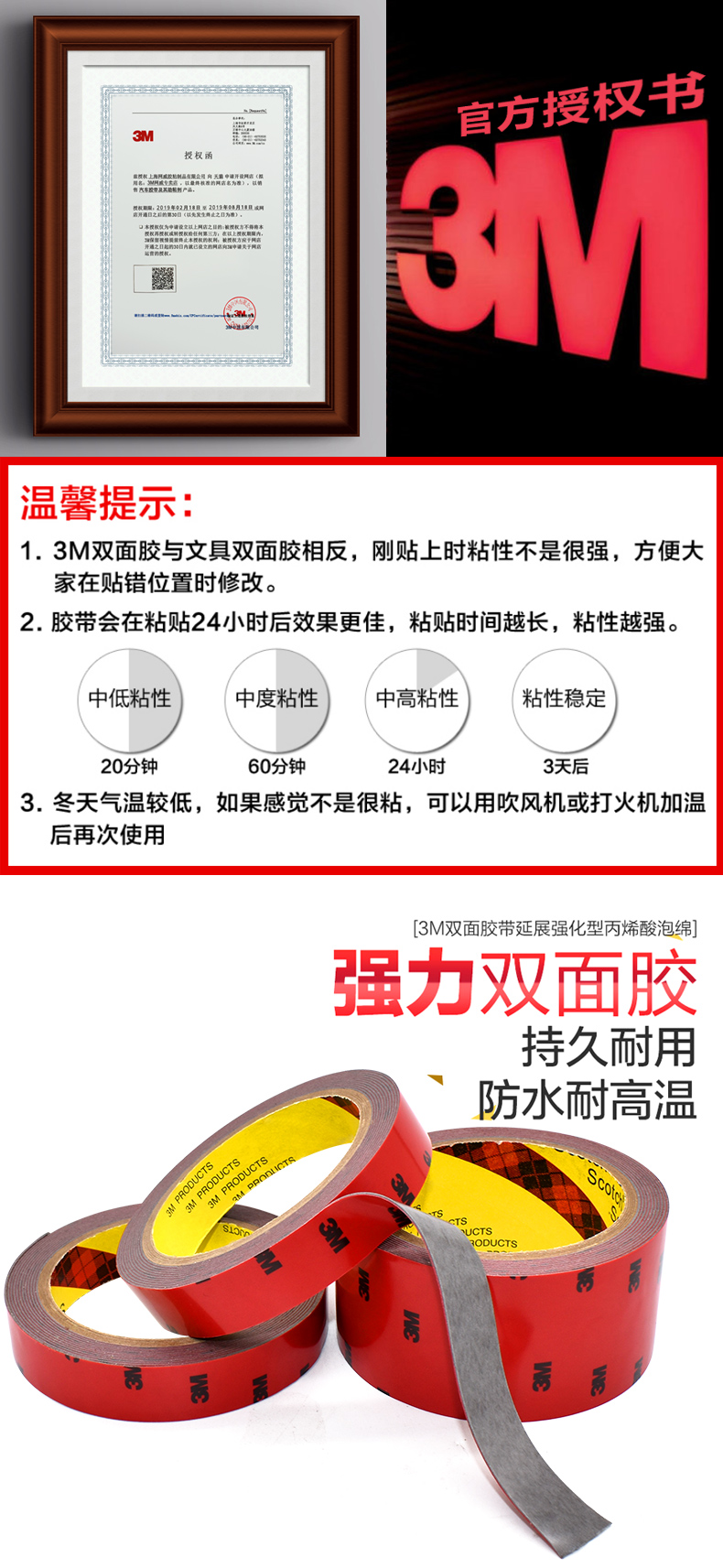 3m双面胶贴强力汽车专用薄粘胶带无痕海绵防水墙面固定车用高粘度
