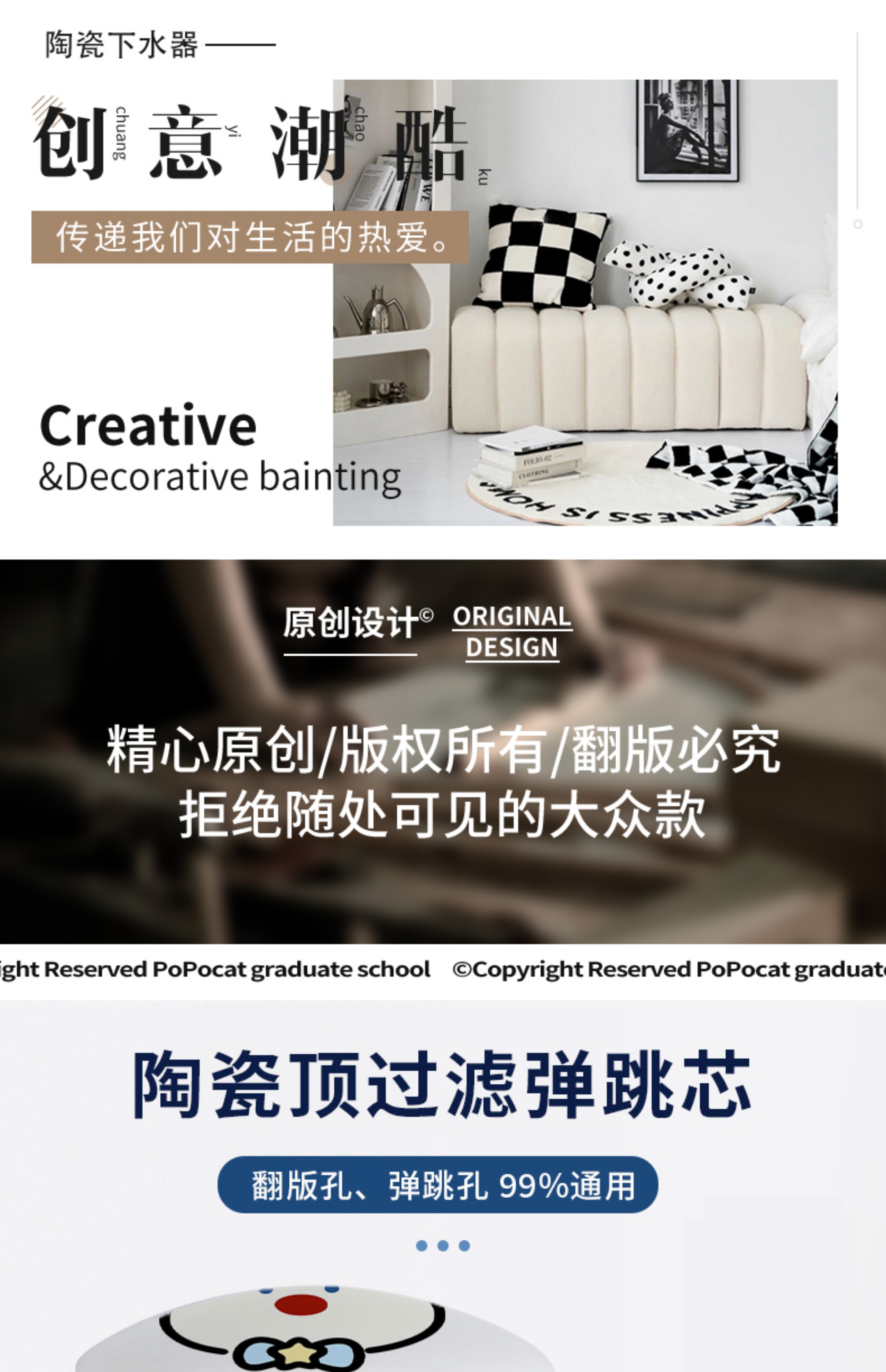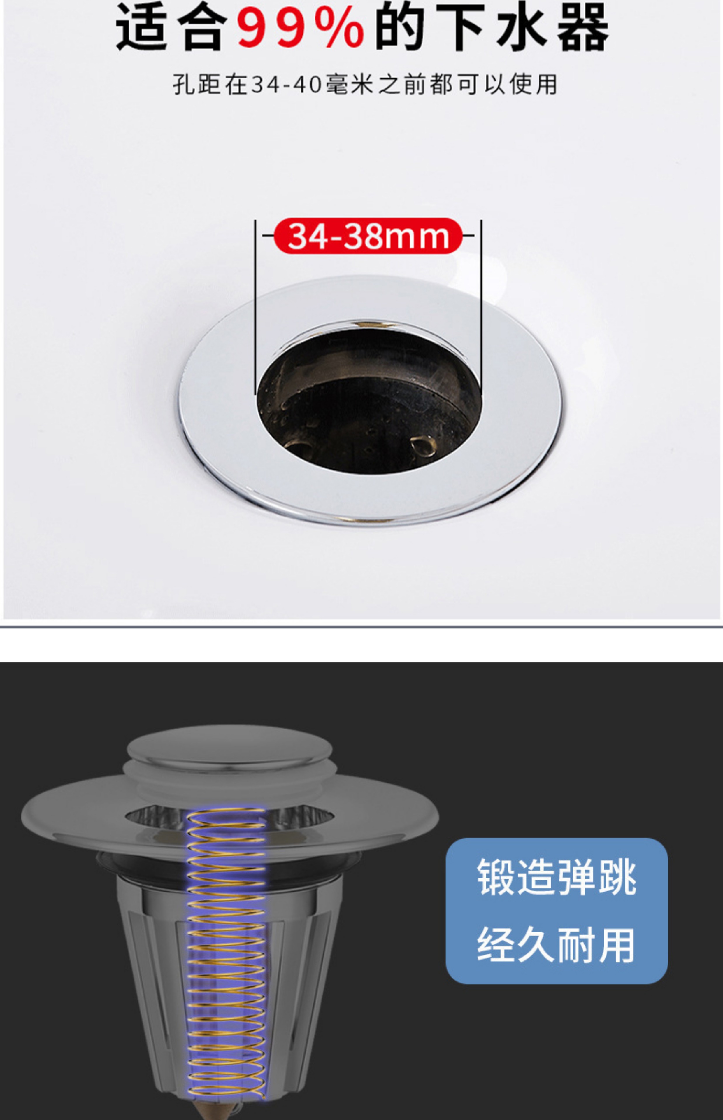 领带小狗小陶瓷洗脸盆卫生间洗手池漏水塞洗脸盆下水器创意弹跳芯