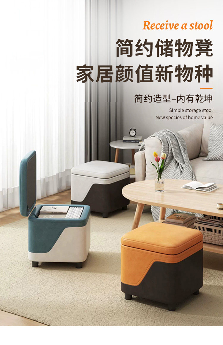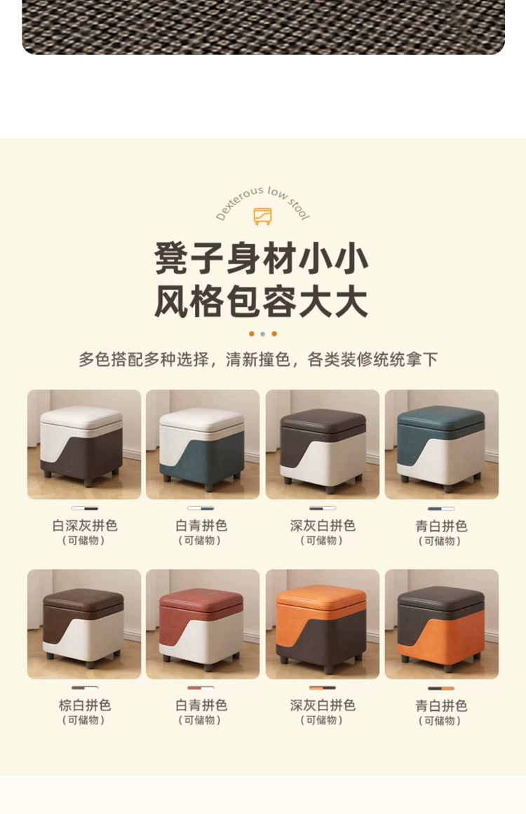 实木凳子家用储物凳收纳凳沙发脚凳门口换鞋凳创意拼色收纳箱矮凳