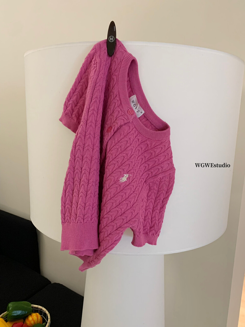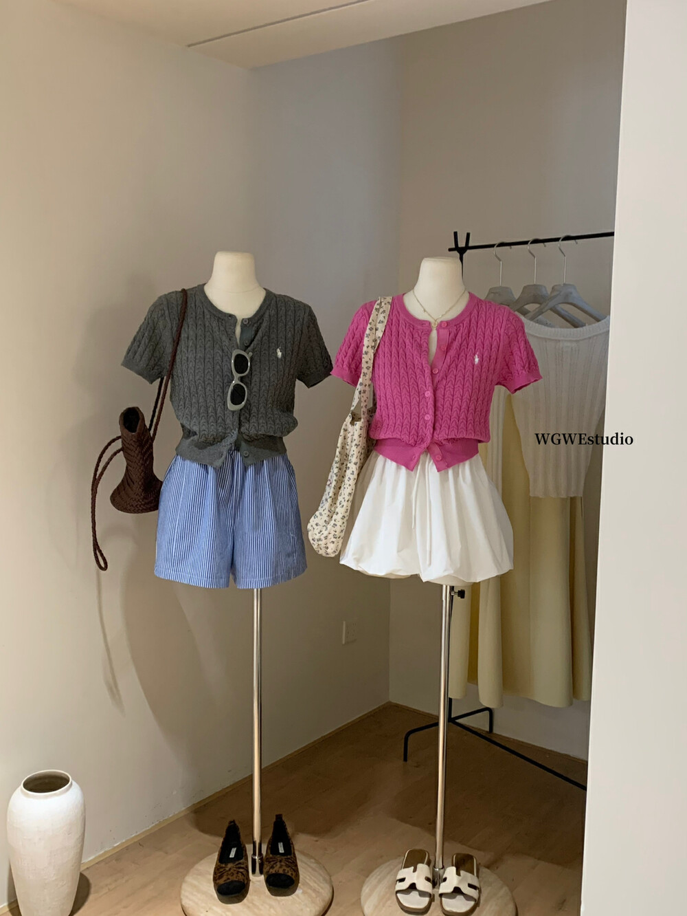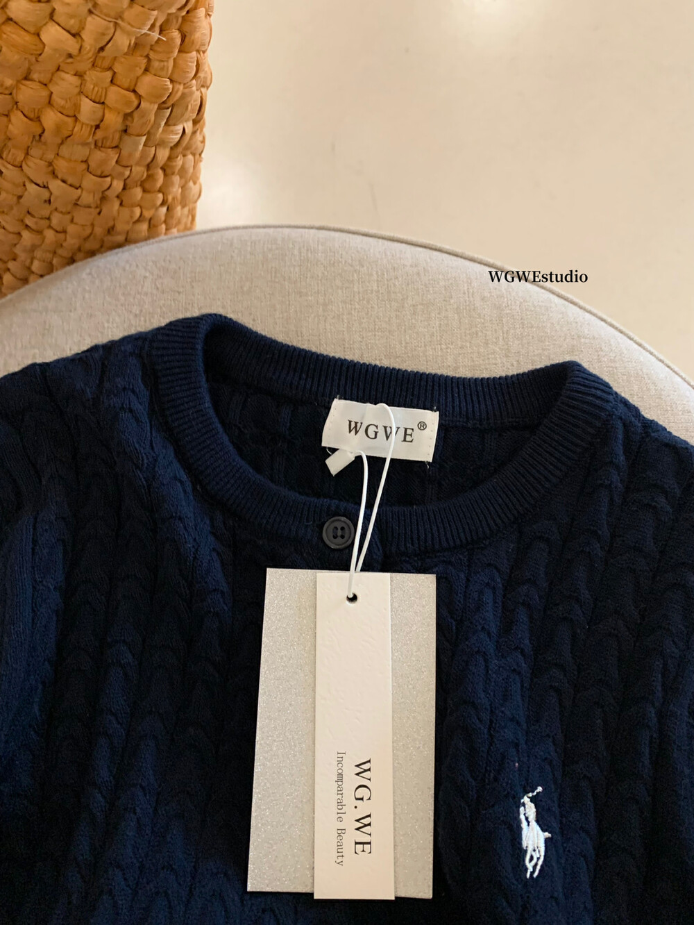 拉夫公园 老钱风经典麻花针织Polo短袖女夏新薄款开衫上衣