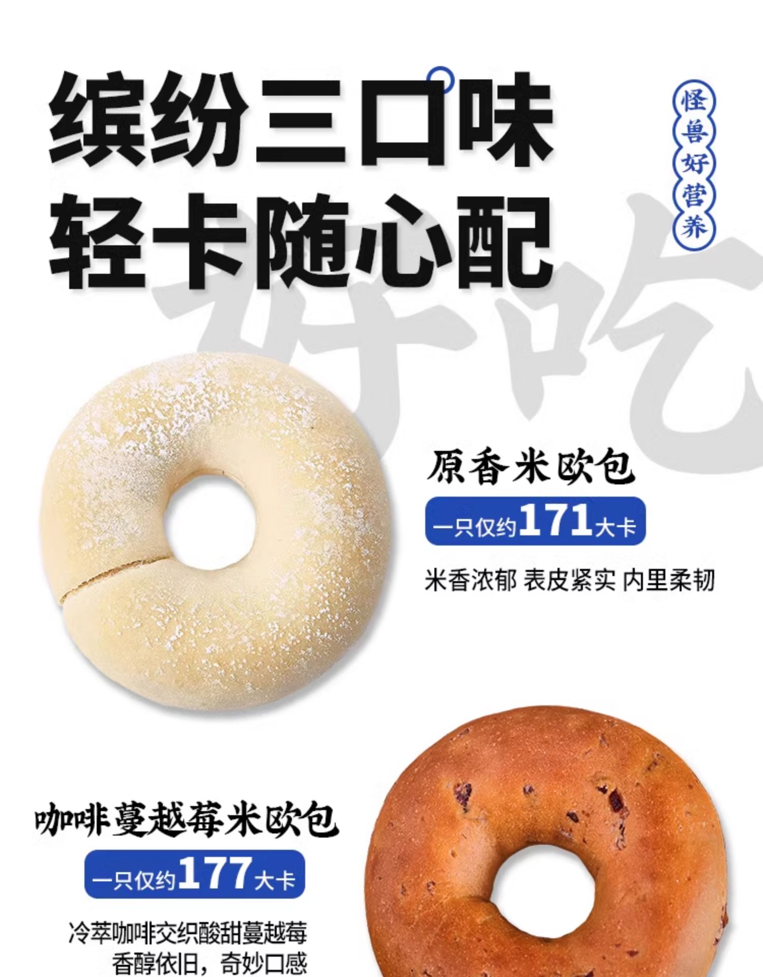 怪兽不厌食纯手工米面包无添加蔗糖健身饱腹抗饿代餐贝果营养早餐