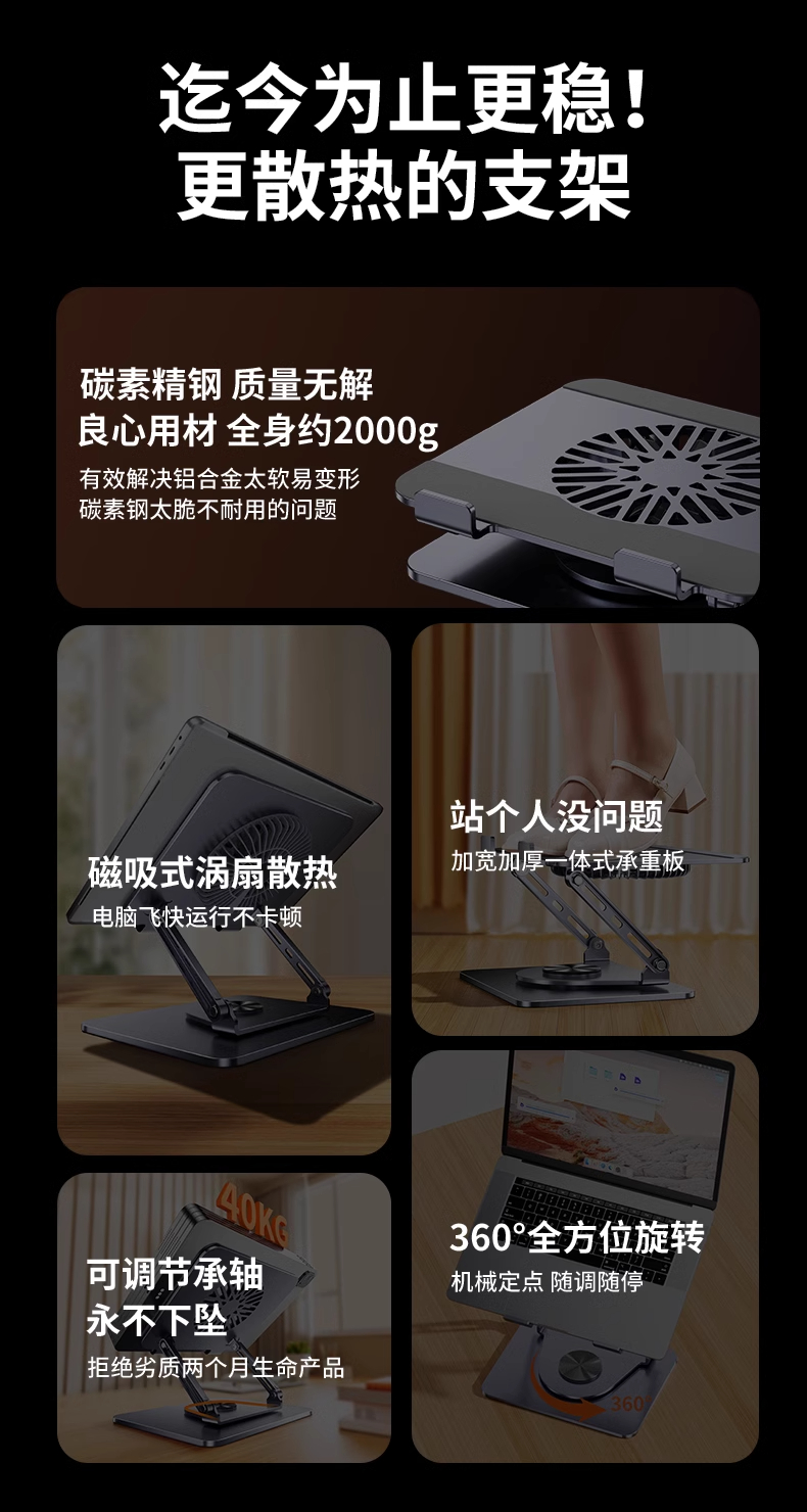 散热新款】笔记本电脑支架宿舍办公室立式增高架托桌面升降macbook支撑架底座可旋转折叠手提ipad平板架子