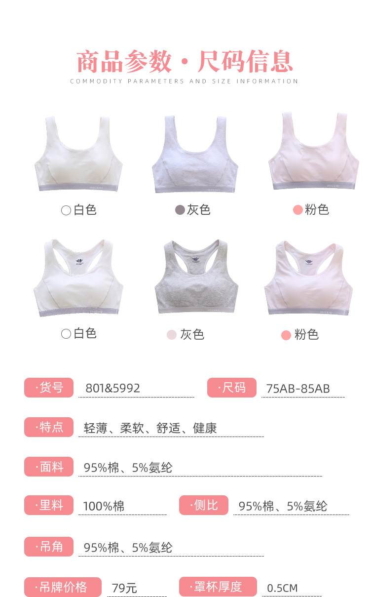 高中生运动内衣女发育期初中生学生小背心青春期少女文胸无钢圈薄