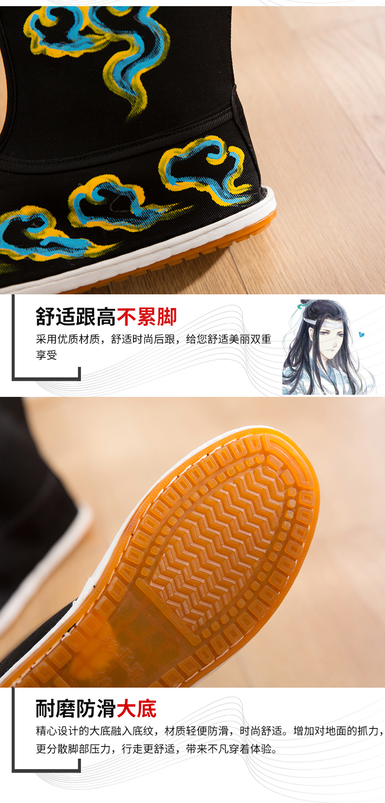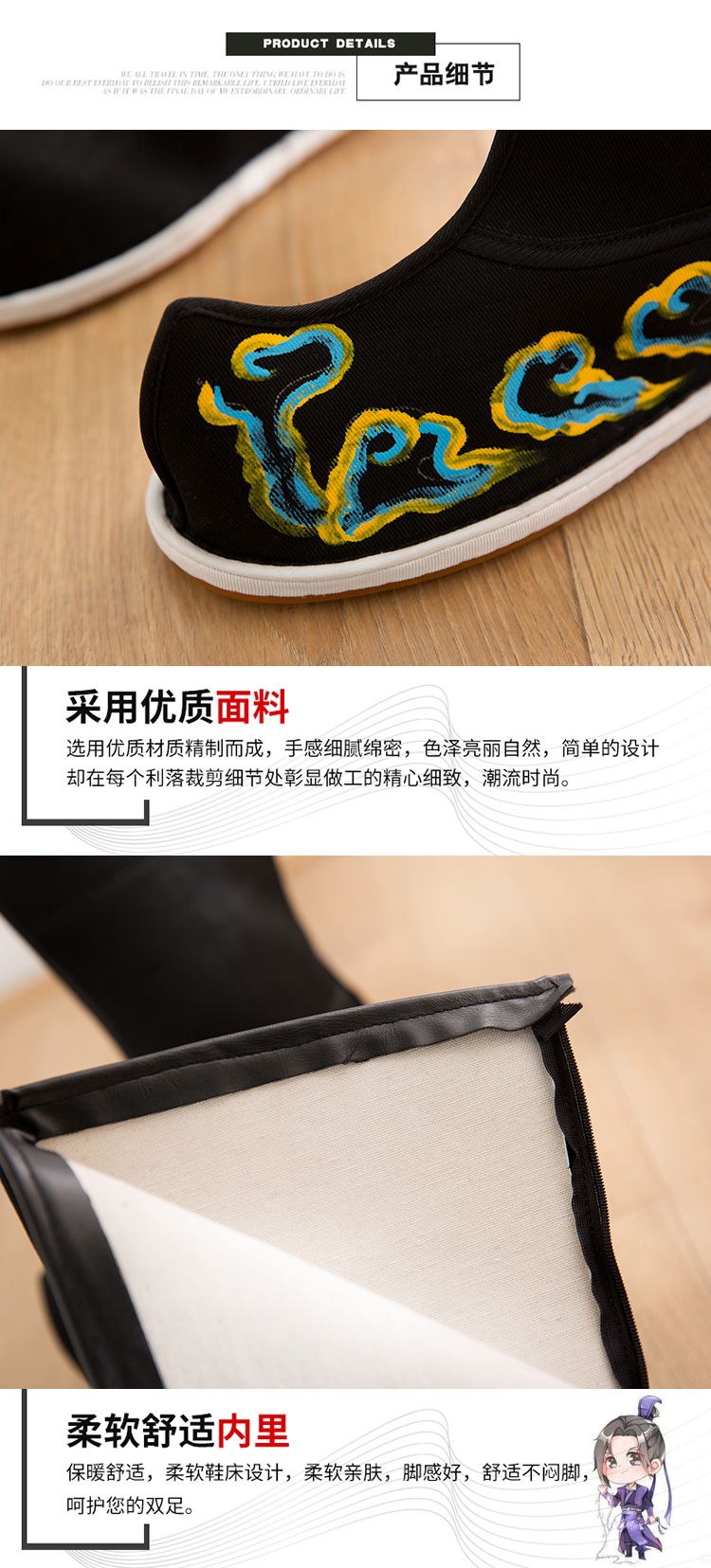 古装汉服鞋高帮弓鞋男士内增高皂靴 cos网游武侠靴子官靴中式婚鞋