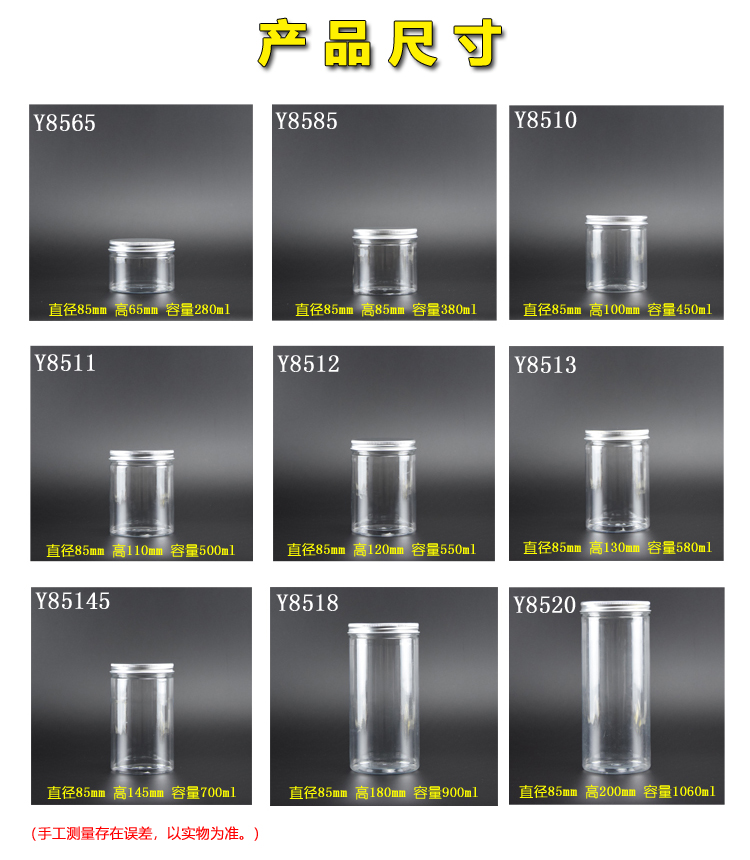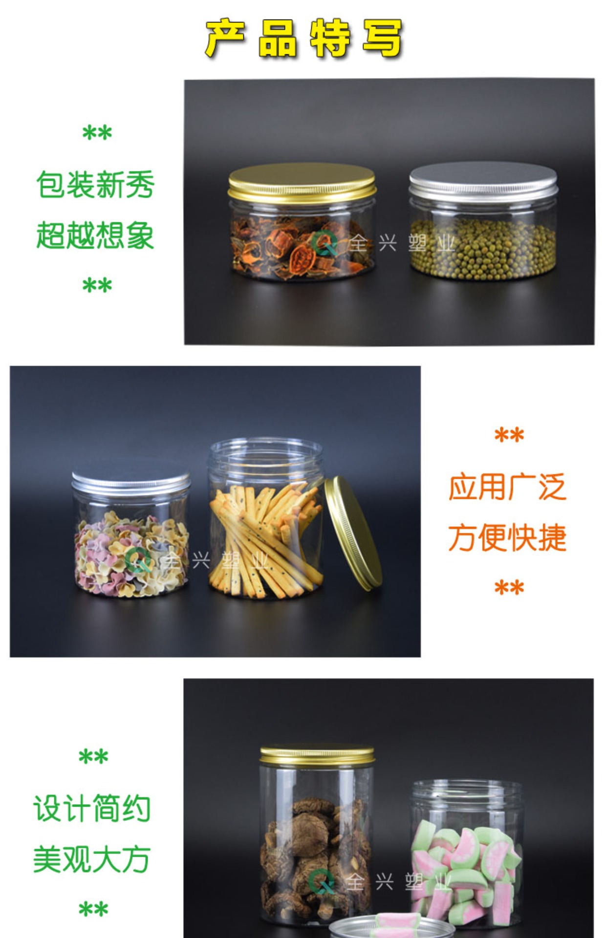 50个铝盖PET食品罐塑料罐透明瓶储物罐糖果五谷杂粮收纳盒包装瓶