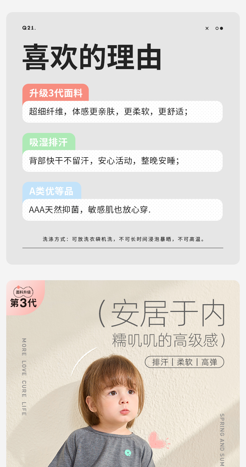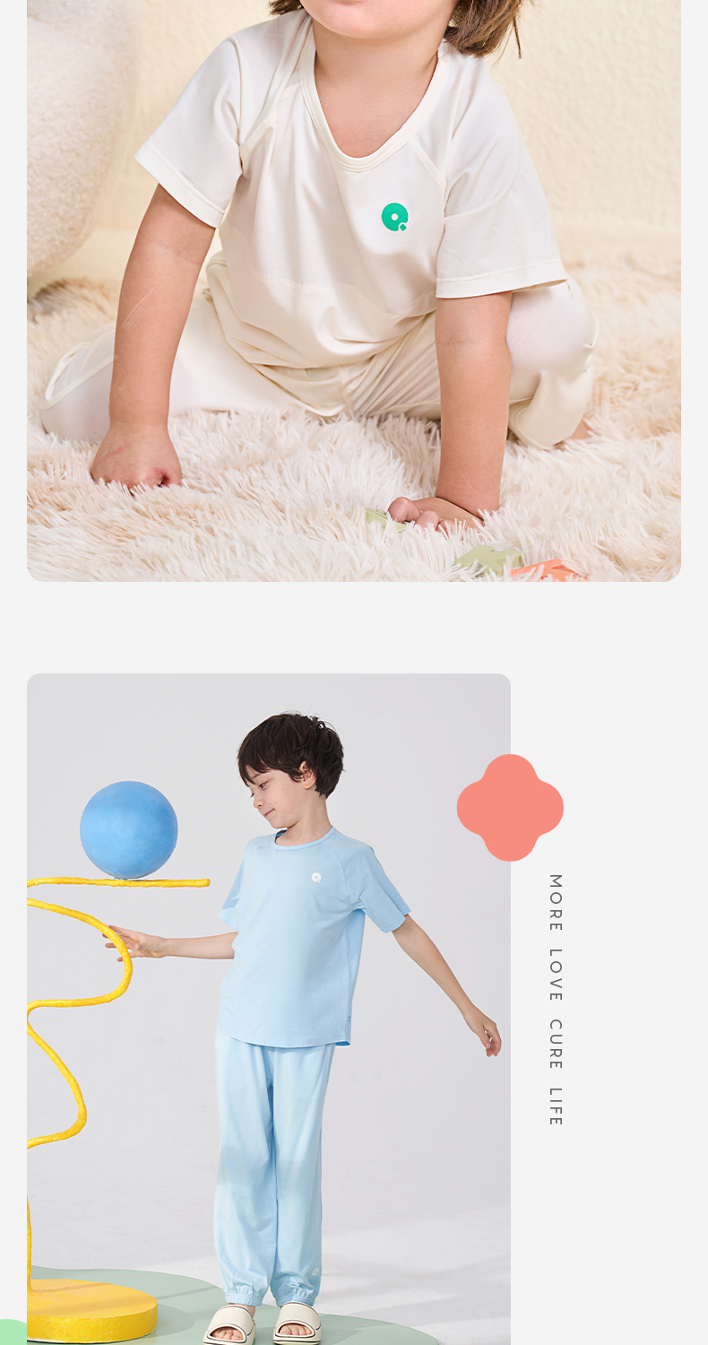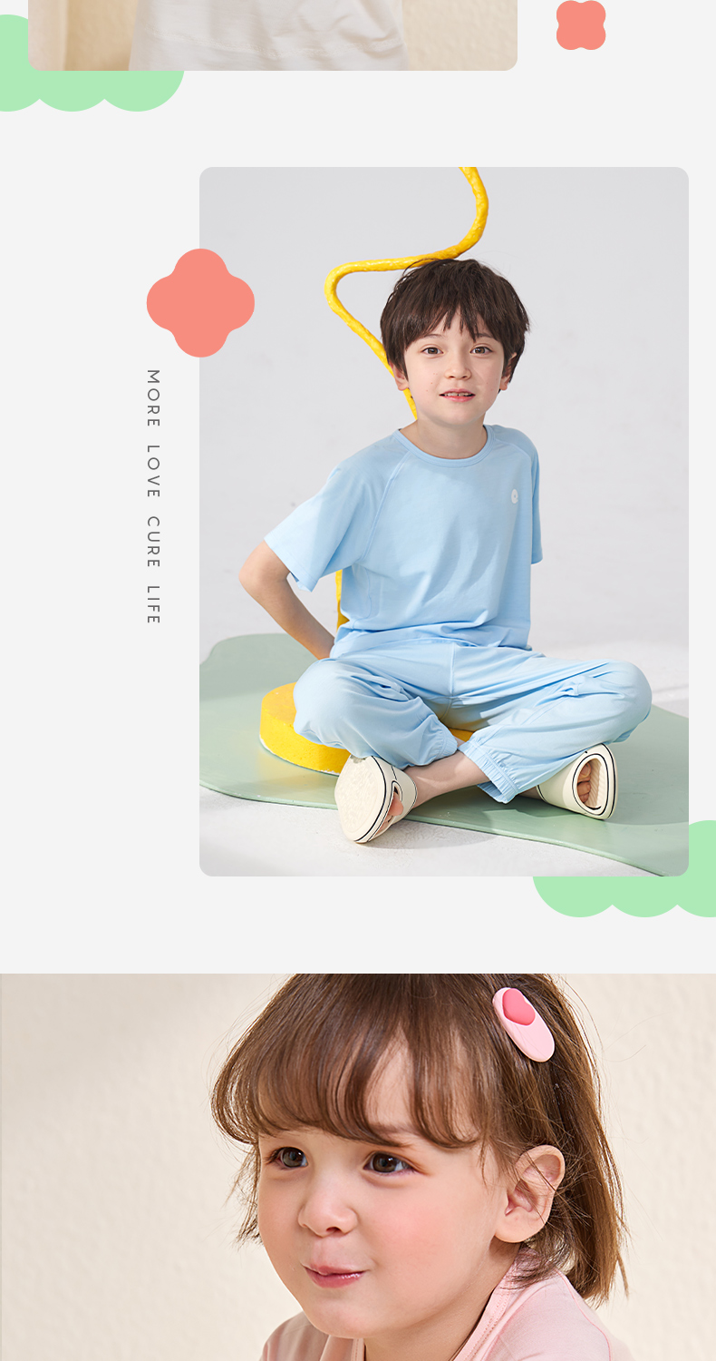 Q21亲子天丝家居服套装儿童睡衣裤男女童抑菌天丝宝宝空调服排汗