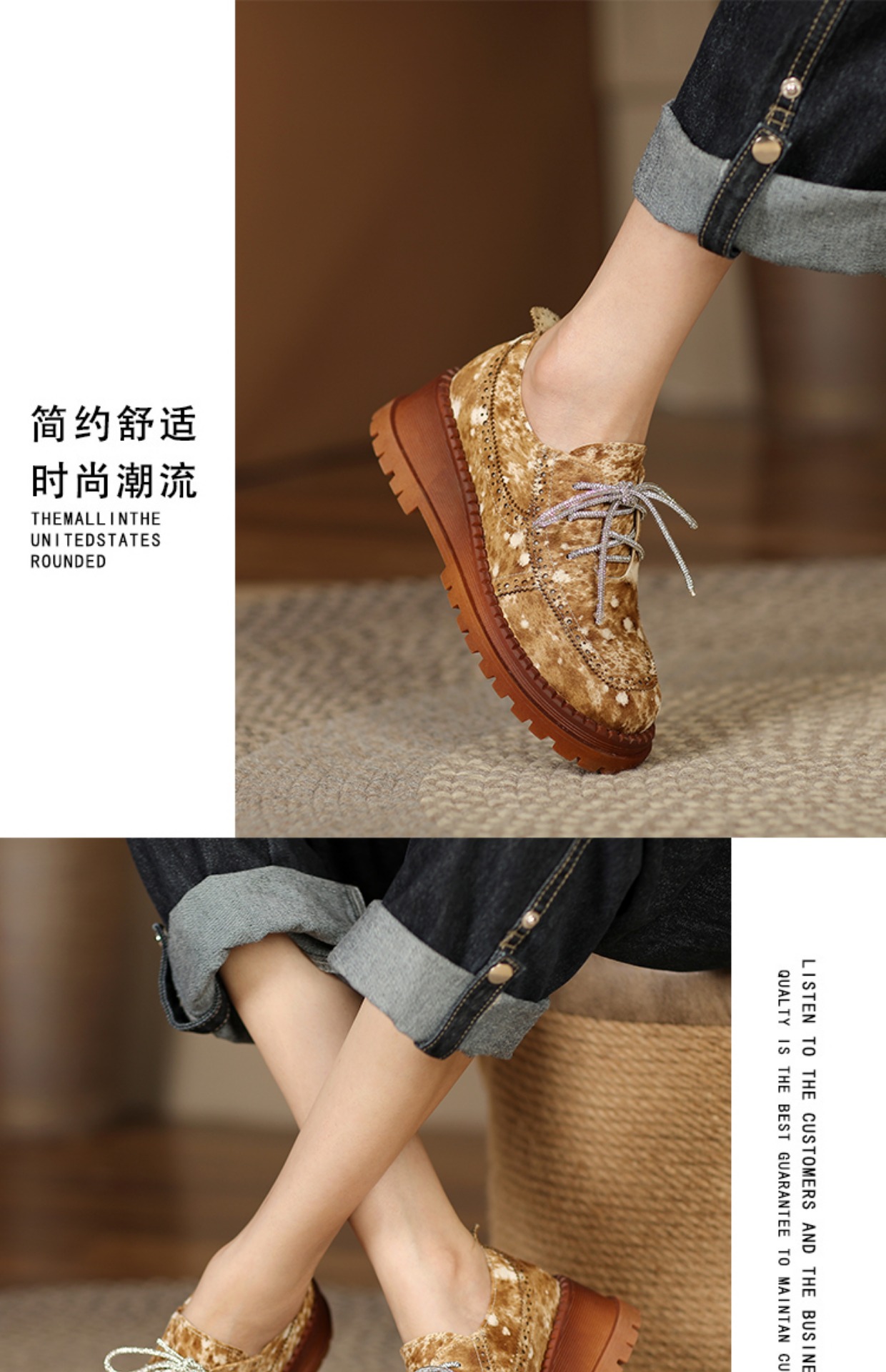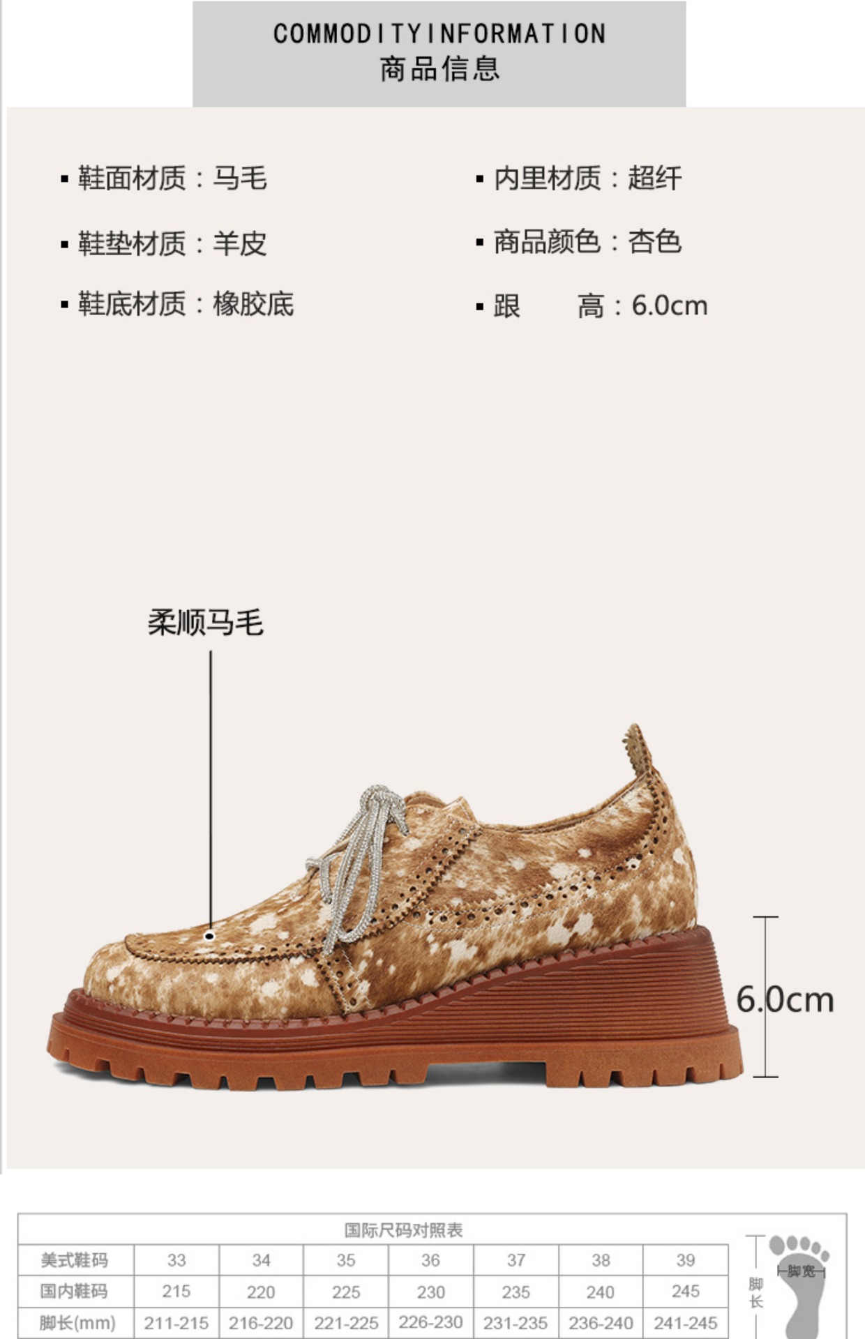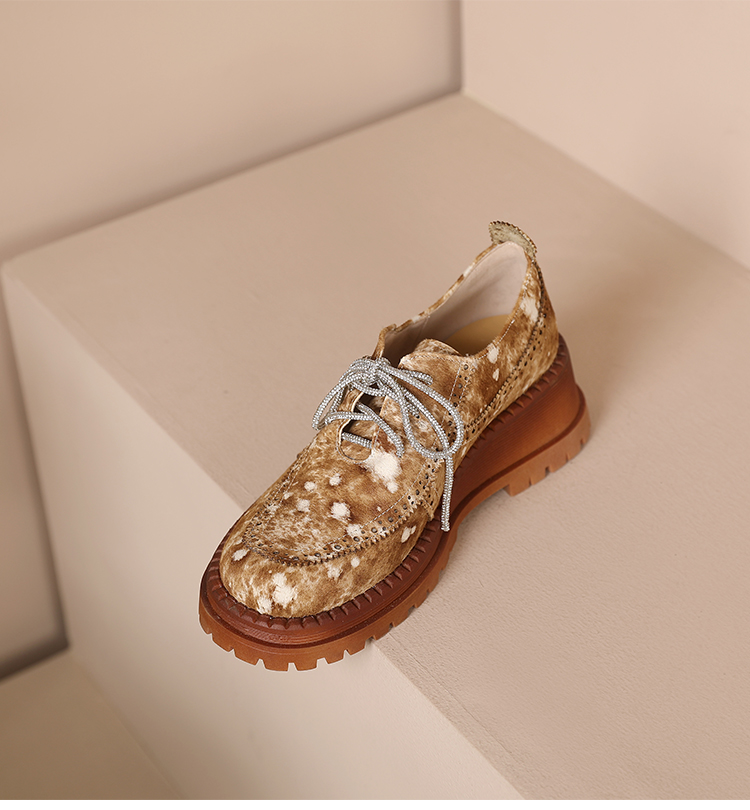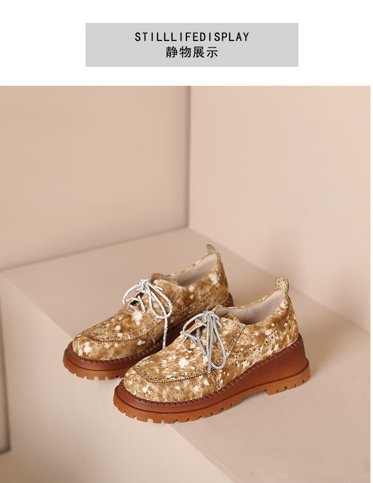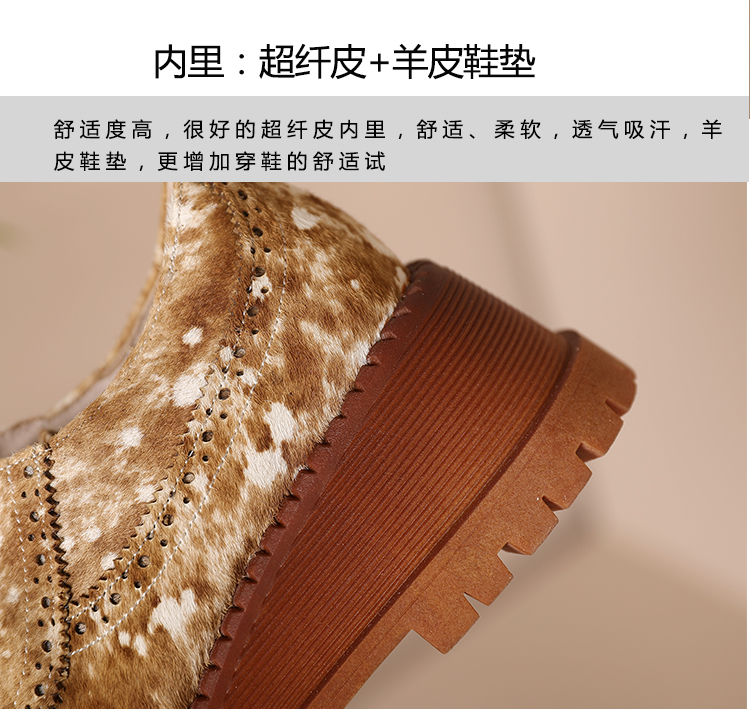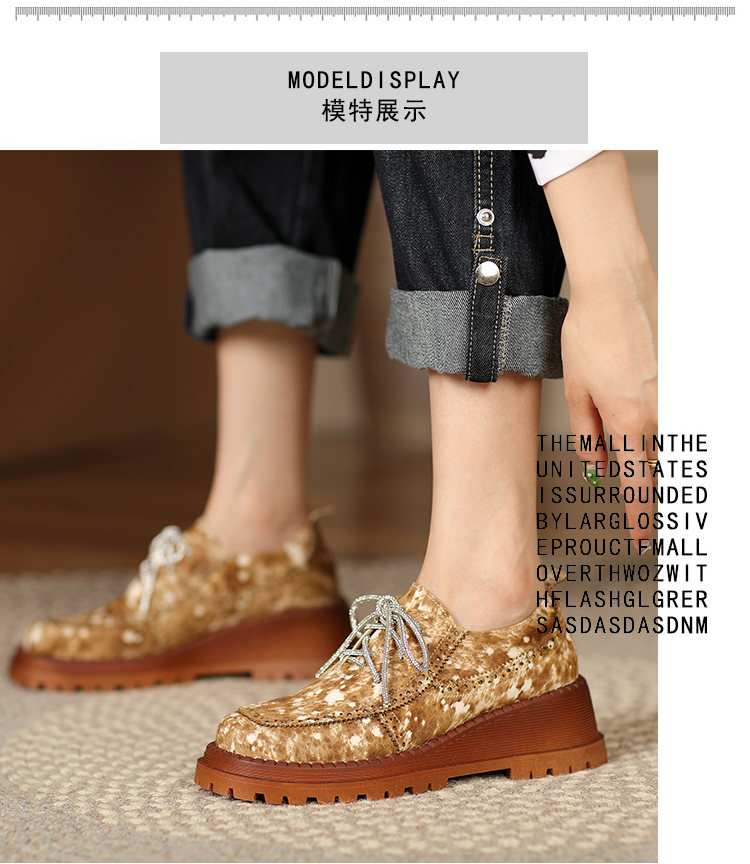 杨小东气质布洛克真皮平底单鞋女原创新款春秋圆头坡跟厚底松糕鞋