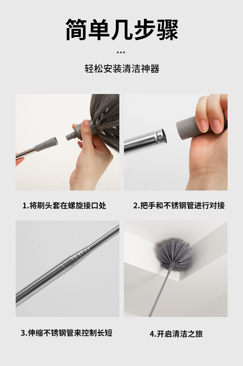 除尘掸打扫蜘蛛网神器家用屋顶高处天花板缝隙扫灰可伸缩鸡毛掸子