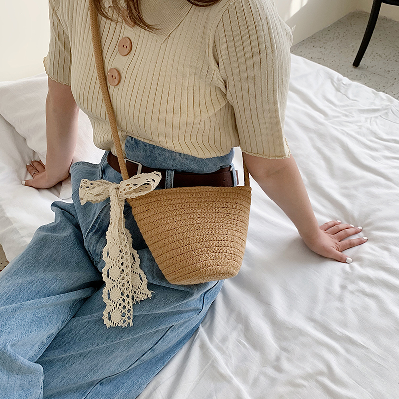 编织包女草编包包2025新款潮时尚百搭ins斜挎包海边度假包水桶包