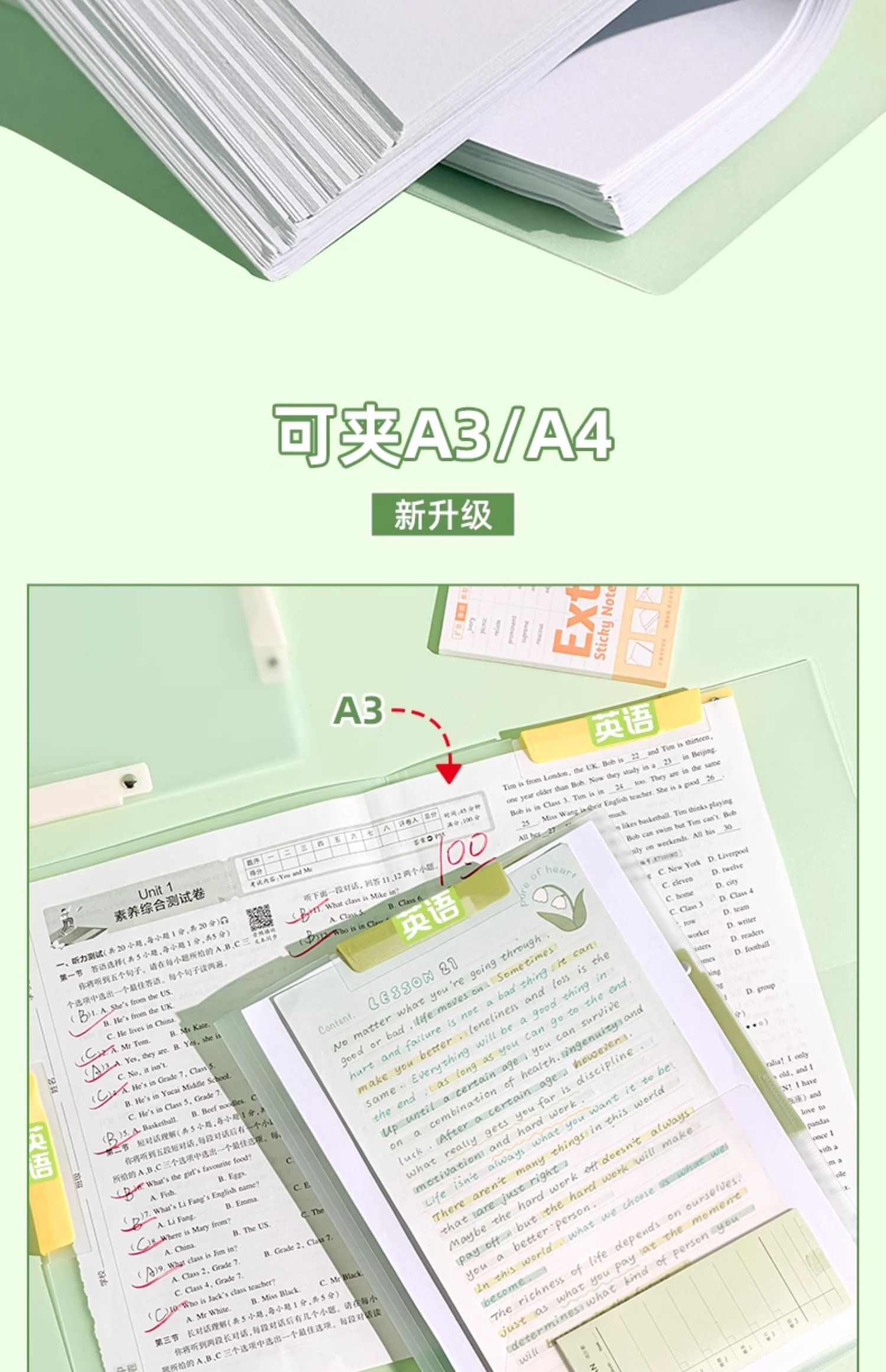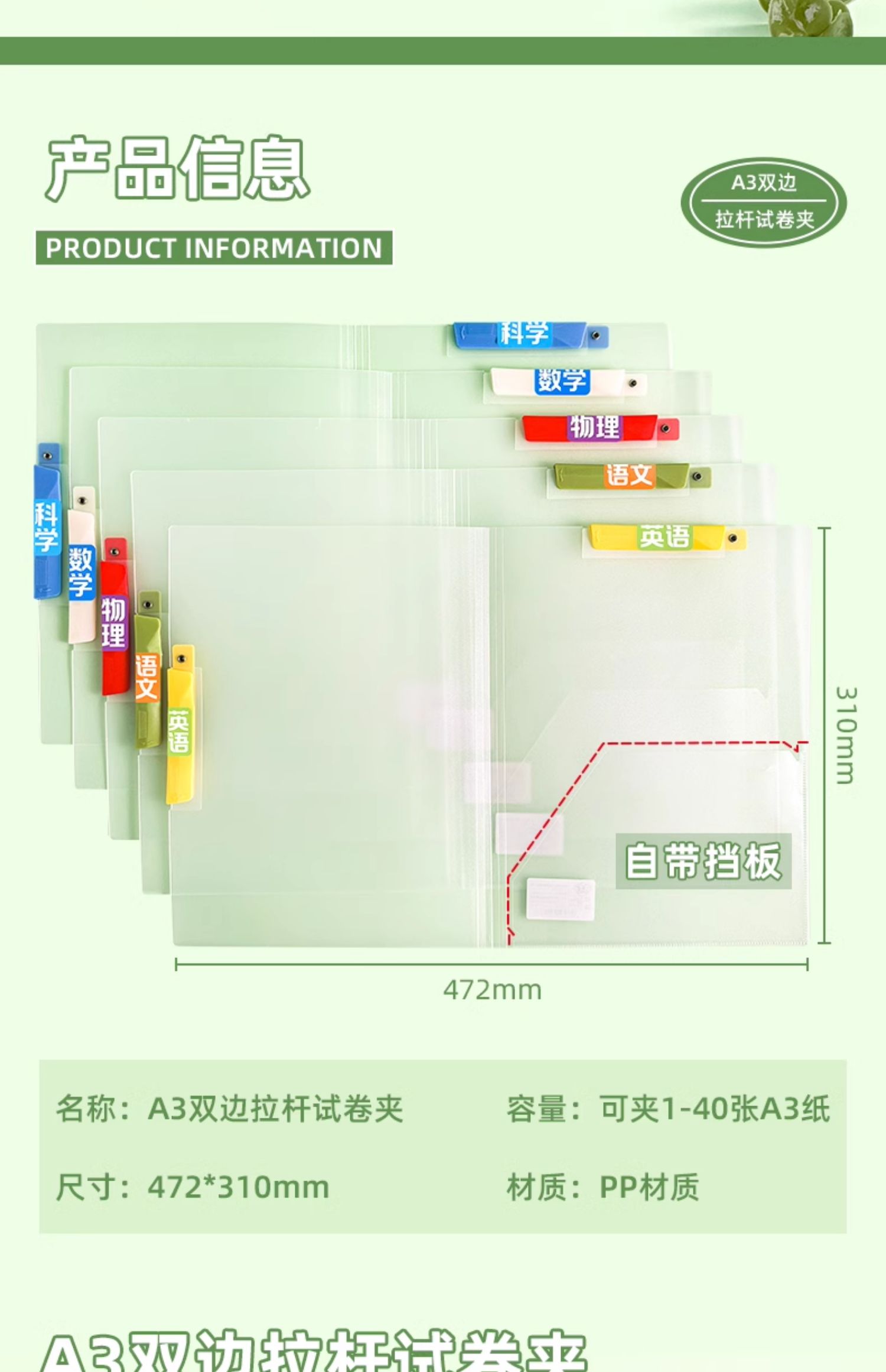 三年二班萌才子A3双拉杆试卷夹卷子收纳袋整理神器透明插页文件夹小学生专用a4资料夹初中生专用旋转抽杆夹