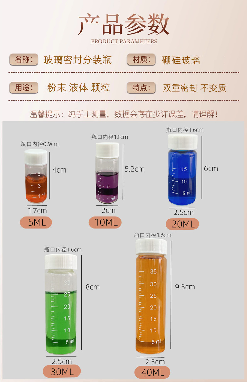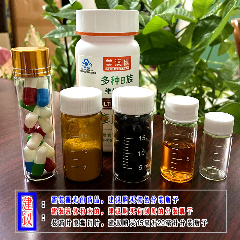 玻璃分装瓶便携药盒随身幼儿口服液药瓶内塞密封液体不漏医用材料