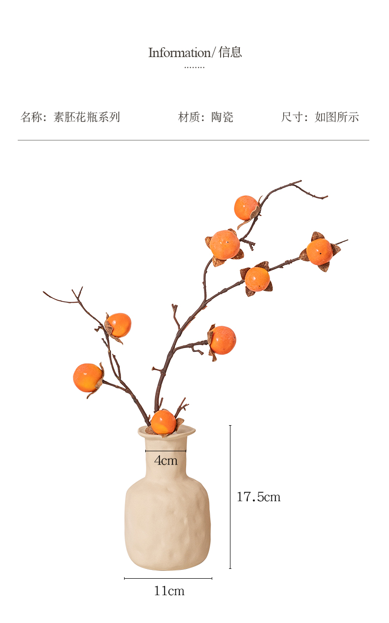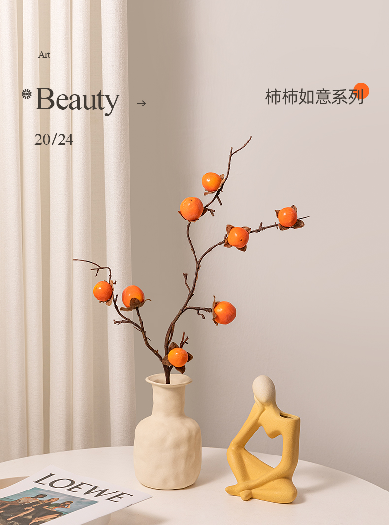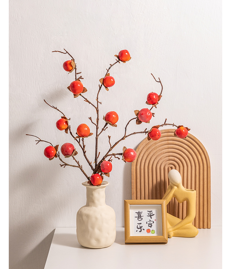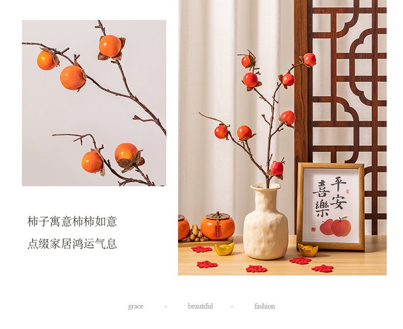 乔迁之喜柿柿如意柿子假花仿真花摆设花瓶摆件客厅电视柜桌面装饰