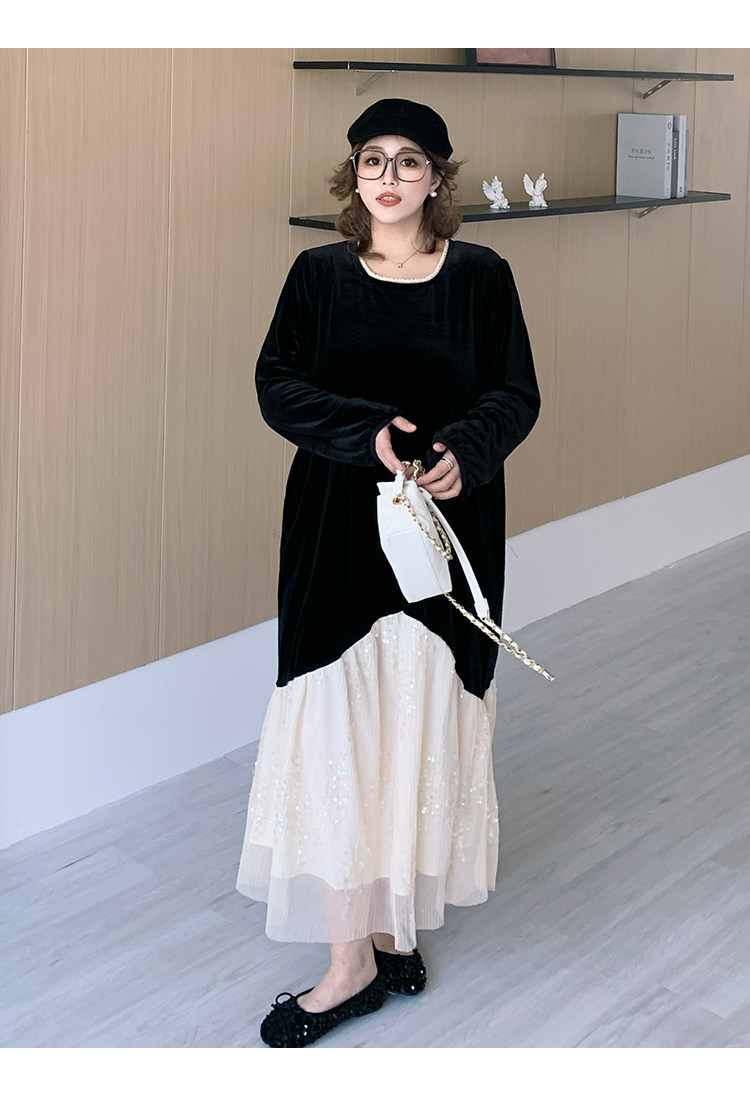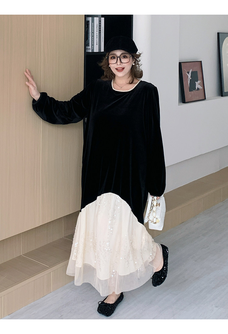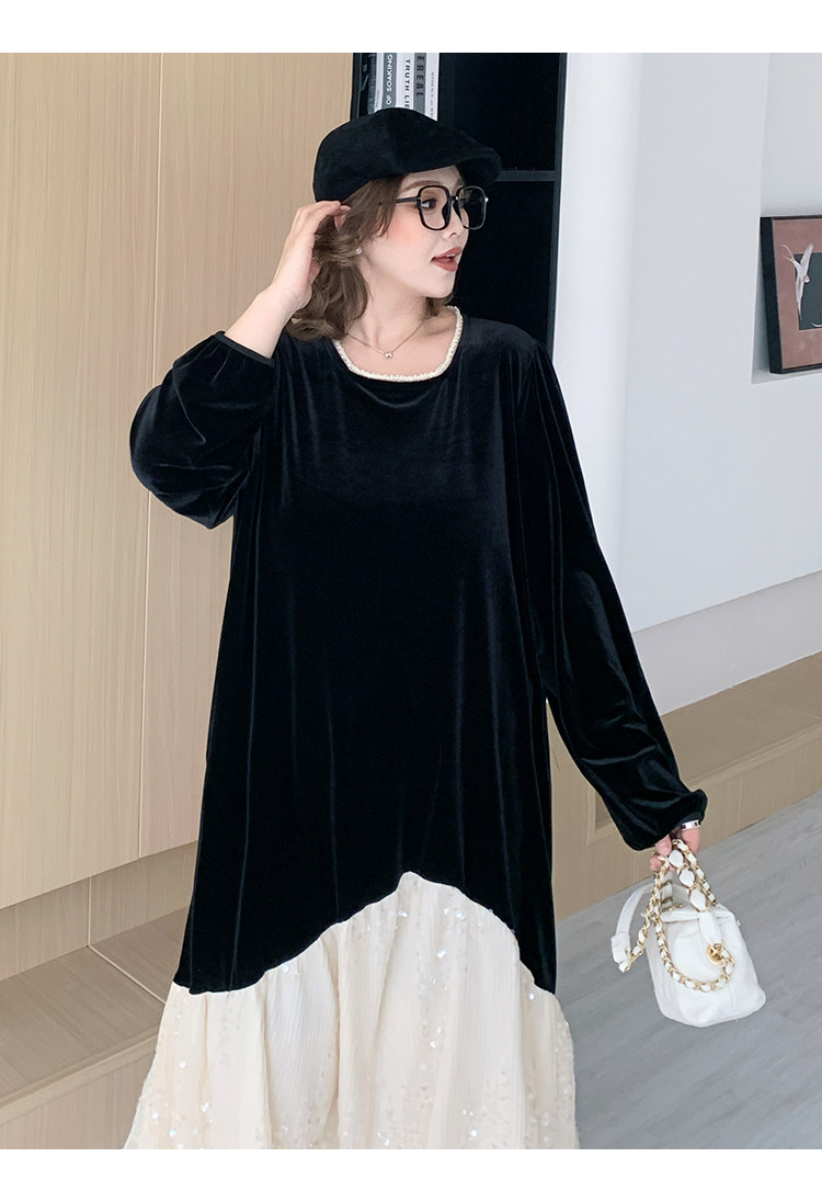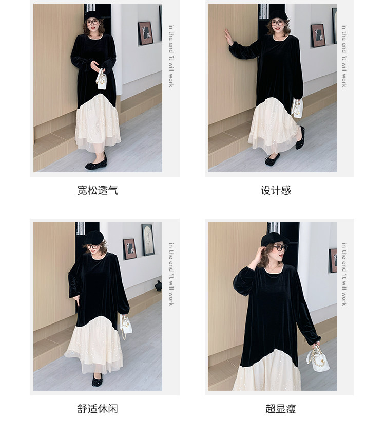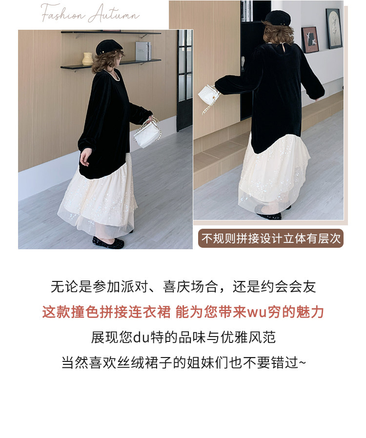 真大码 胖MM丝绒宽松鱼尾连衣裙