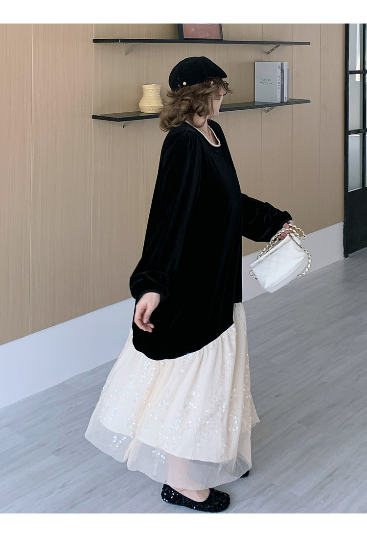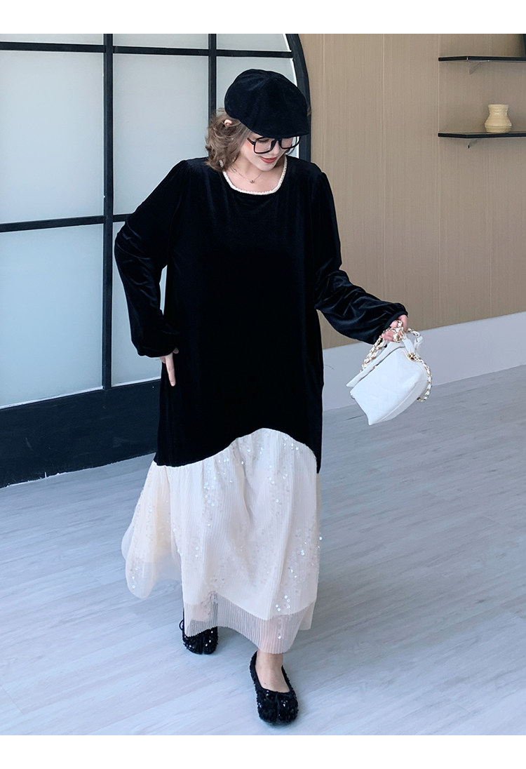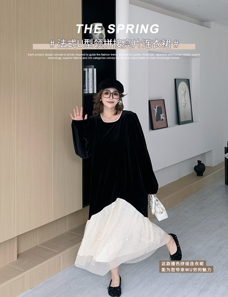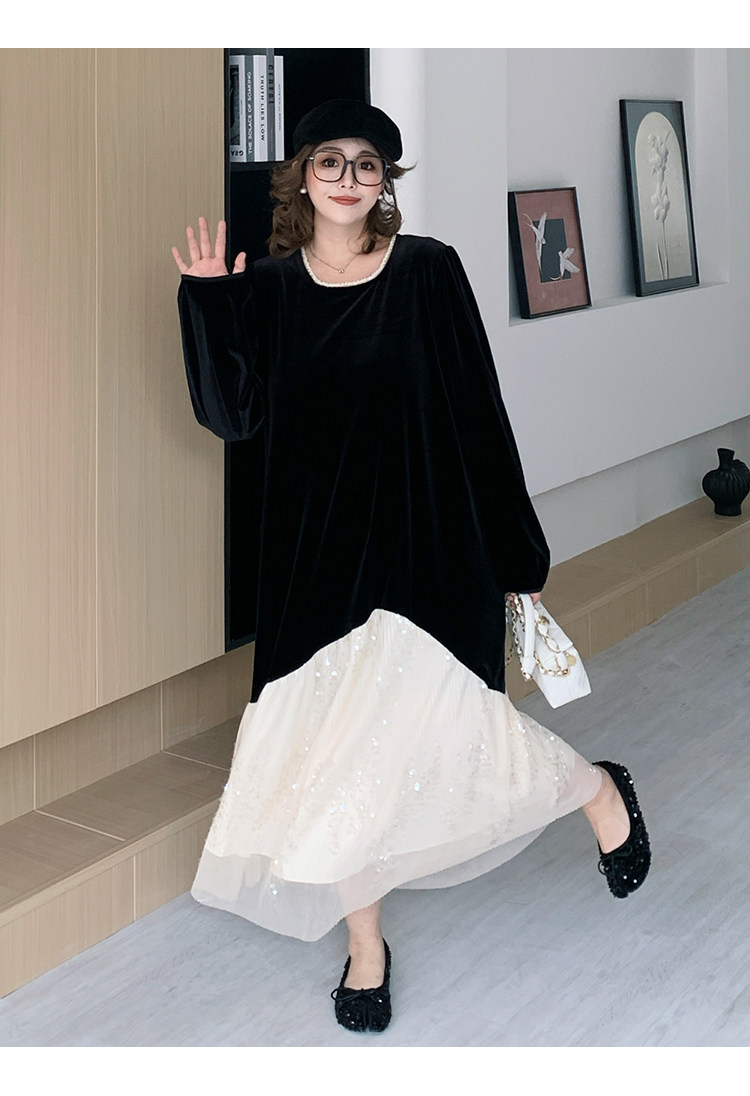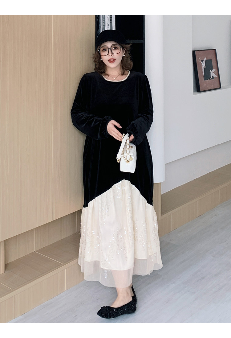 真大码 胖MM丝绒宽松鱼尾连衣裙