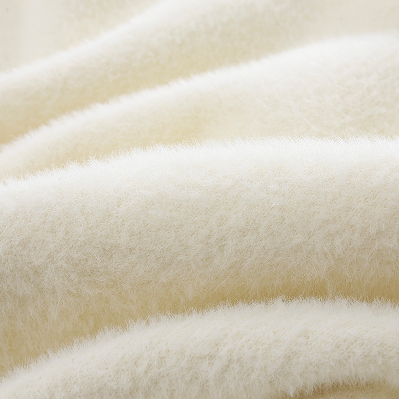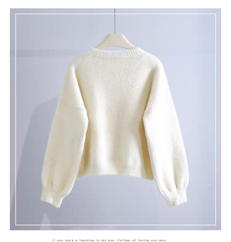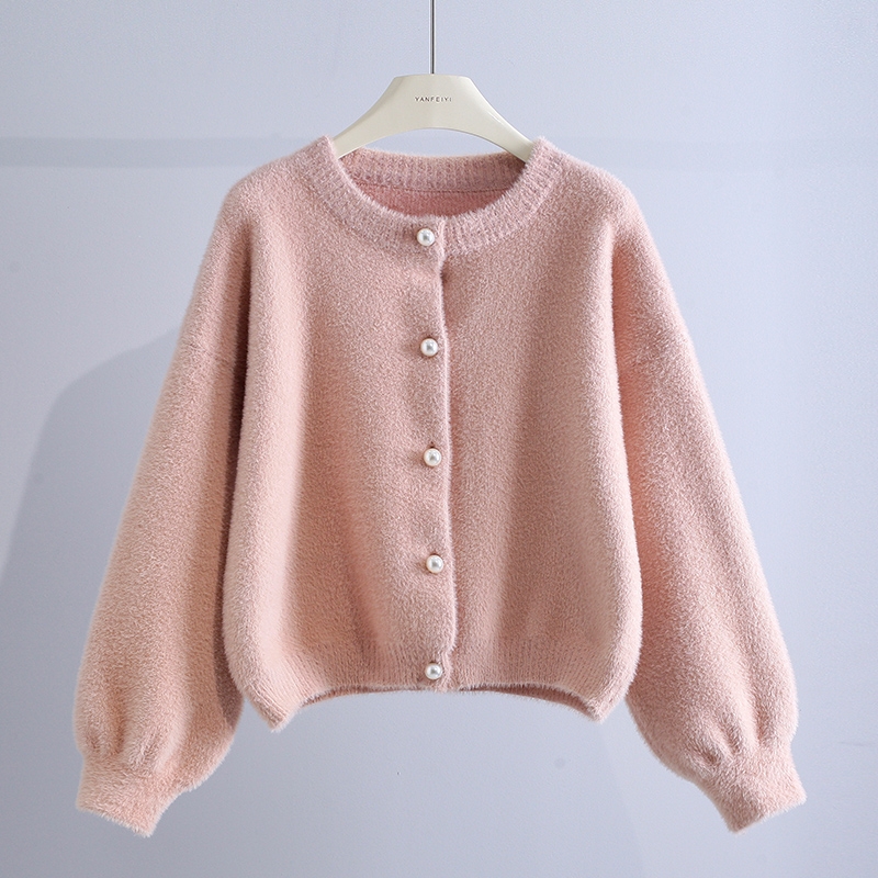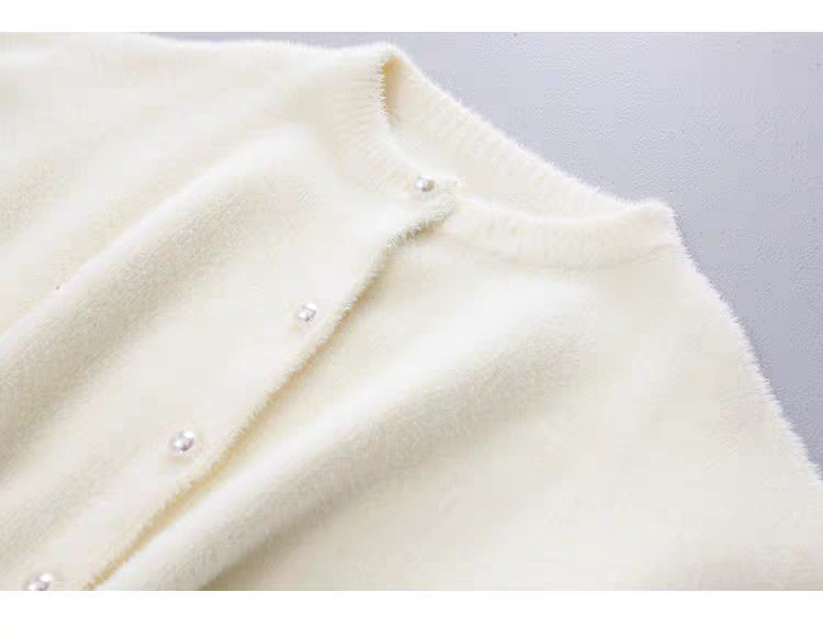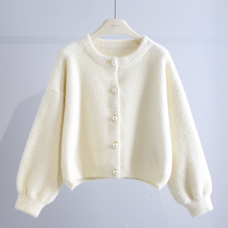 短款奶白色仿水貂绒毛衣外套女2025春秋新款宽松慵懒风针织开衫厚