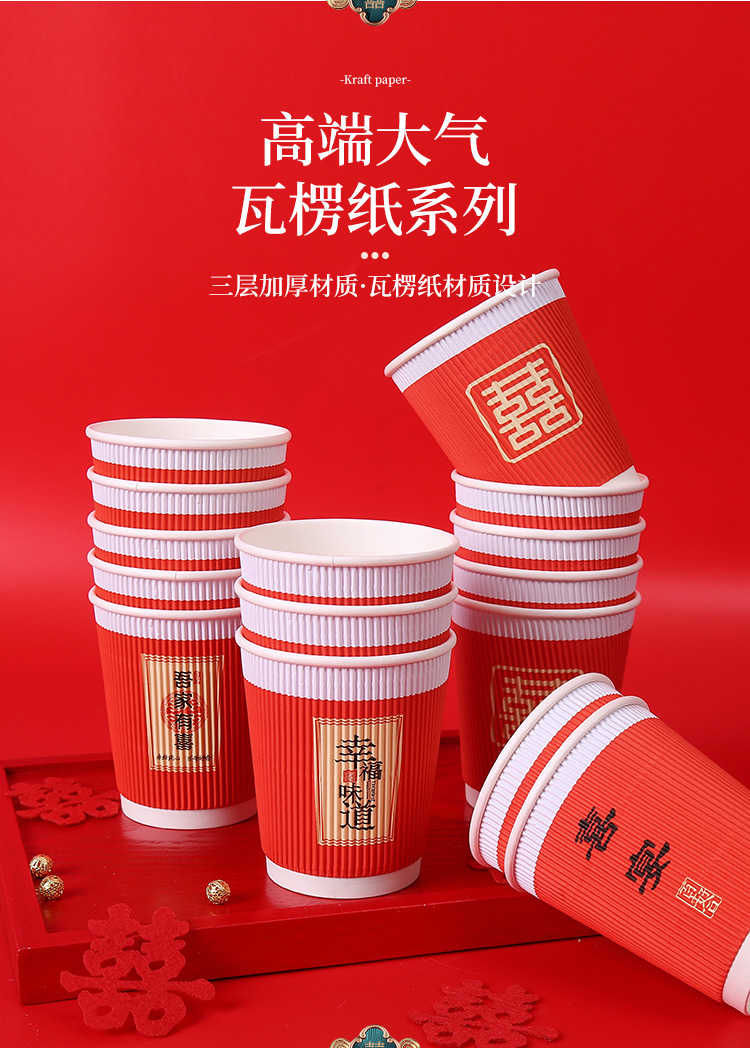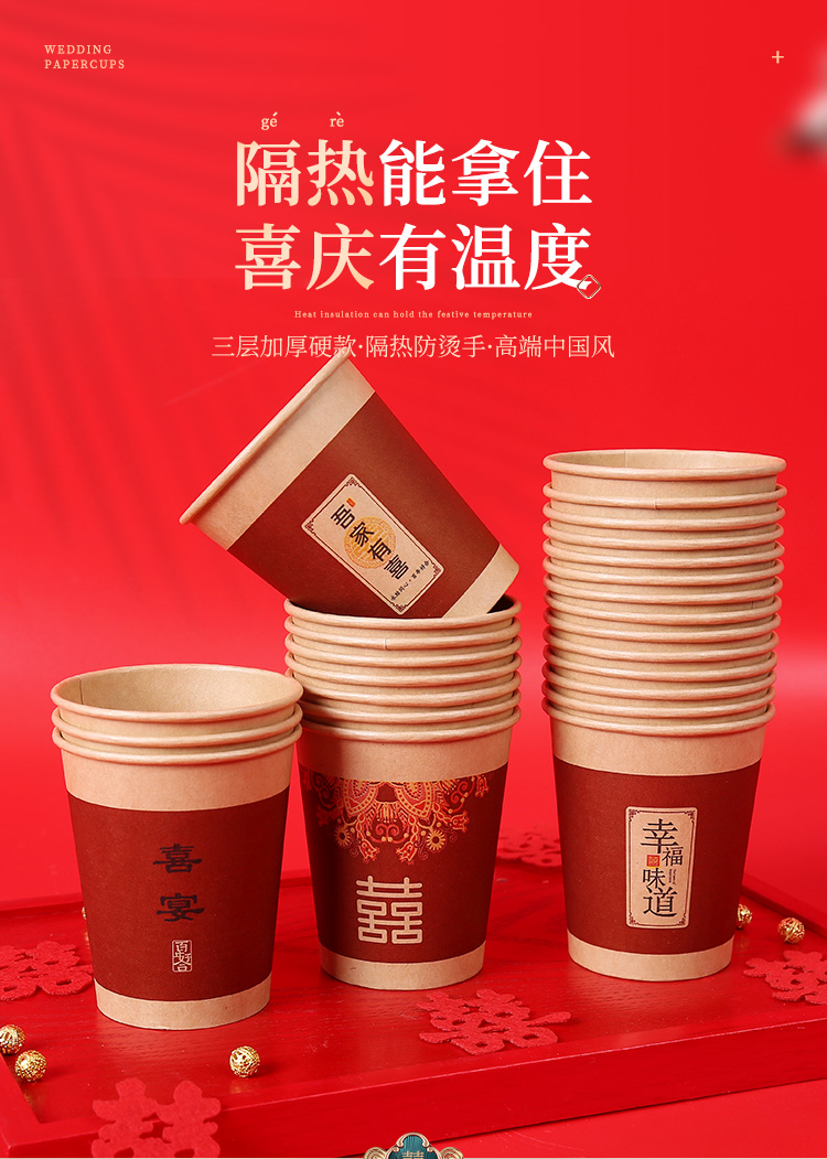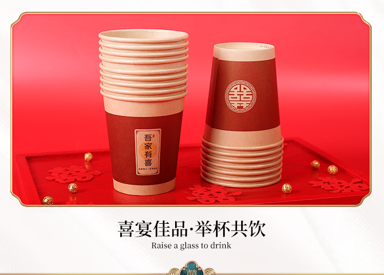 结婚用品大全喜字纸杯水杯婚礼婚庆加厚喜事一次性喜杯子订婚喜杯