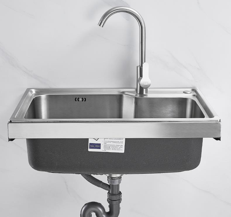 厨房304不锈钢水槽带支架洗菜盆挂墙上支架双槽单槽水池洗碗洗手