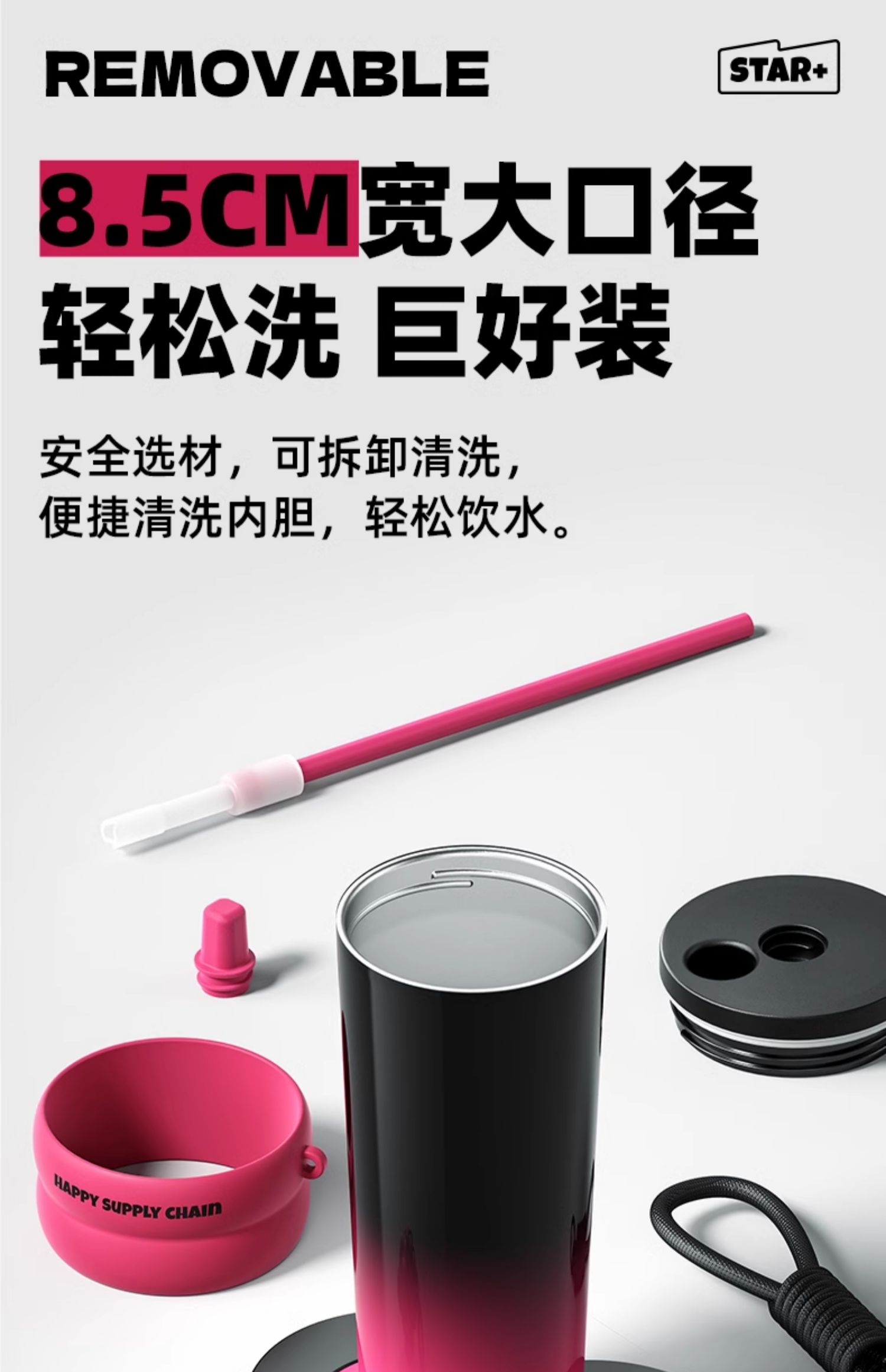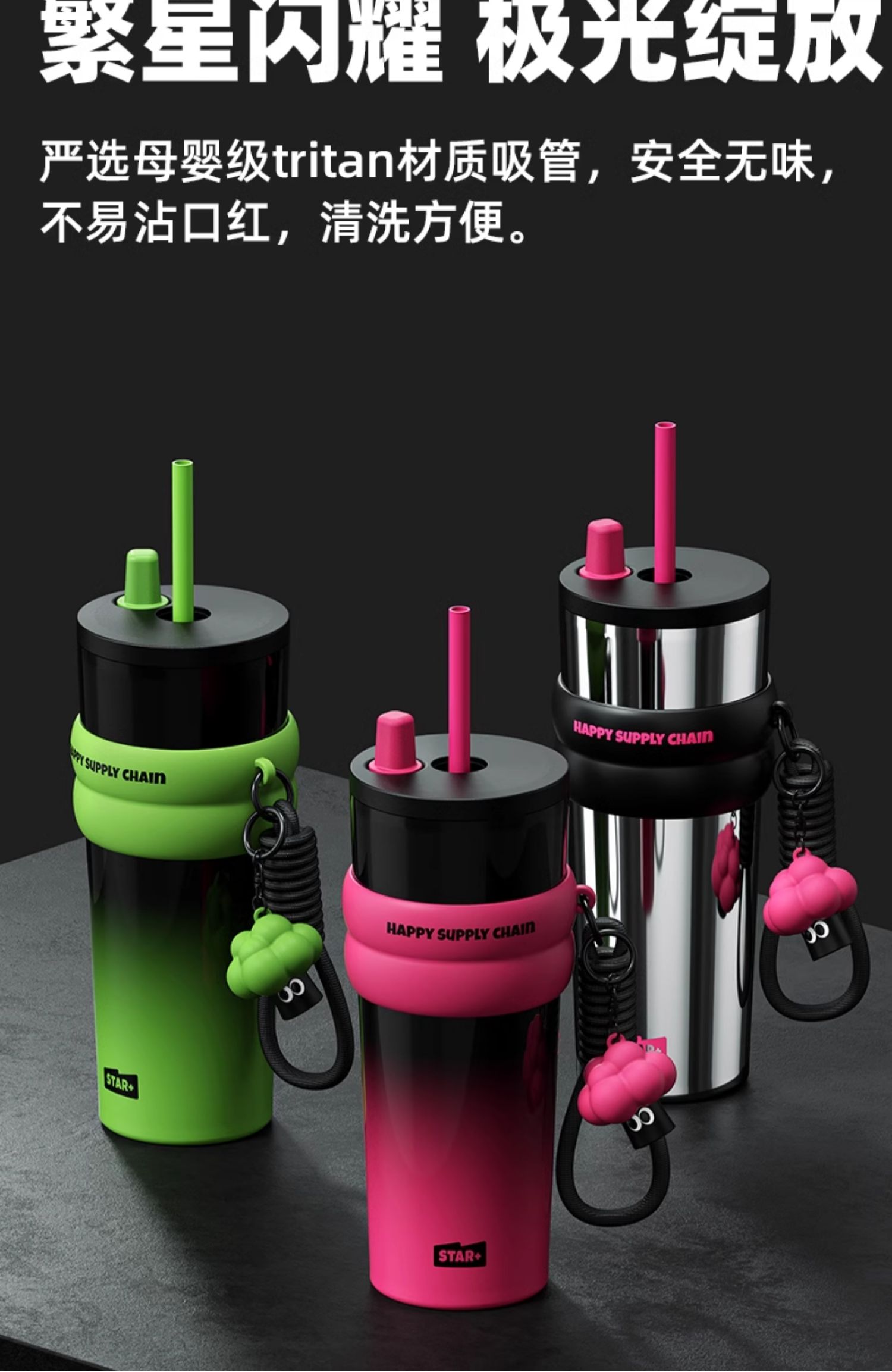 世大家保温杯女大容量车载陶瓷咖啡随行保冰霸杯子男儿童吸管水杯