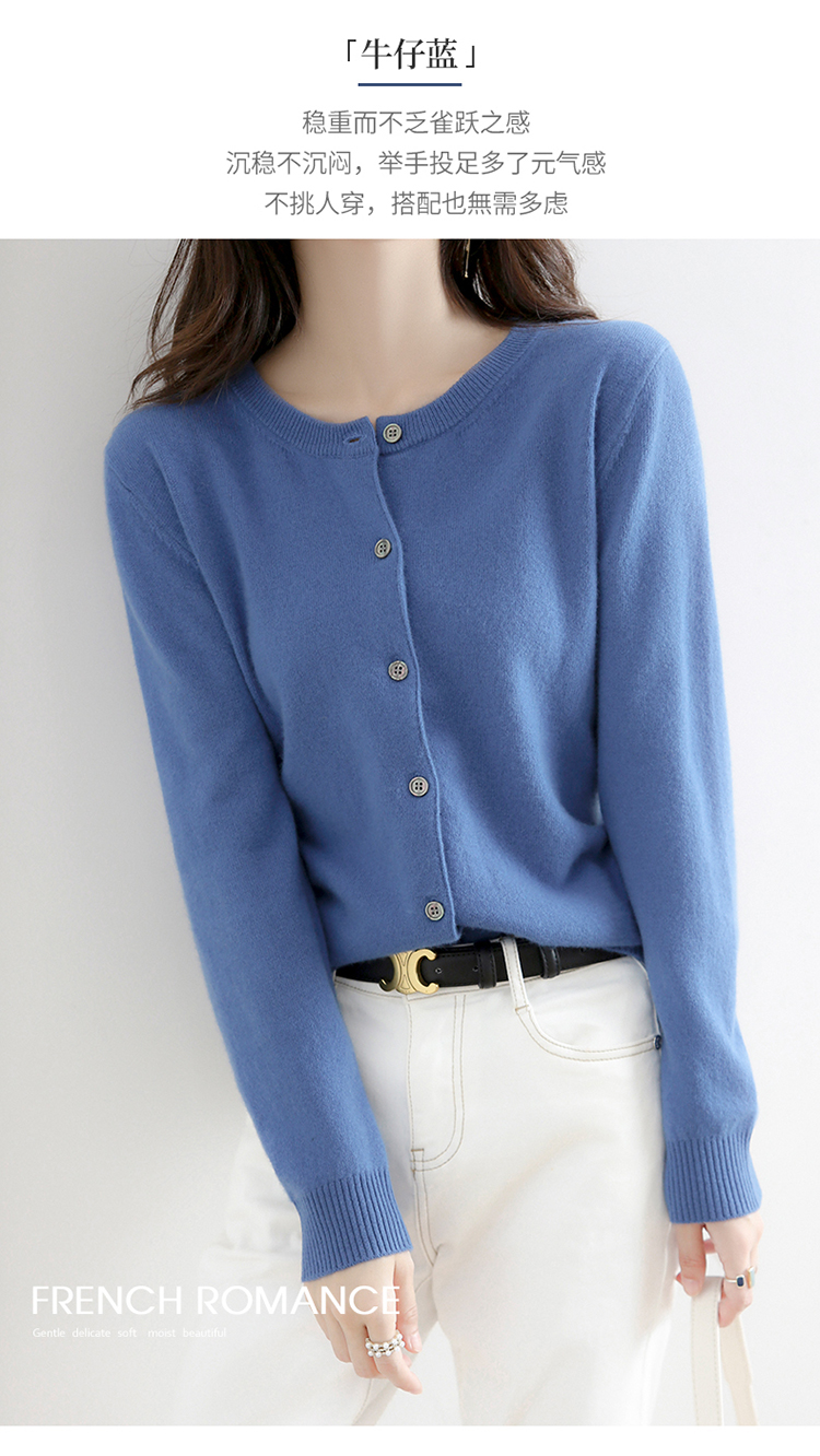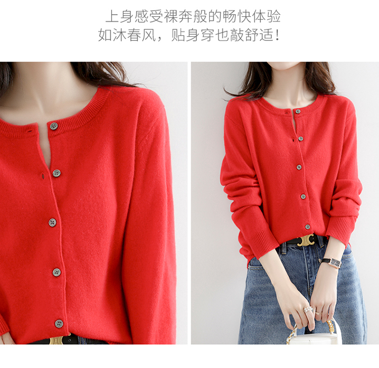 反季清仓38元针织开衫女羊绒衫2024春秋短款圆领宽松外套大码毛衣