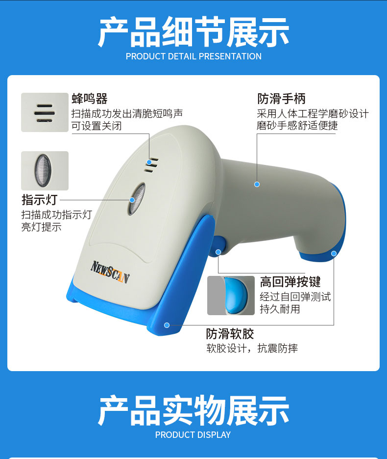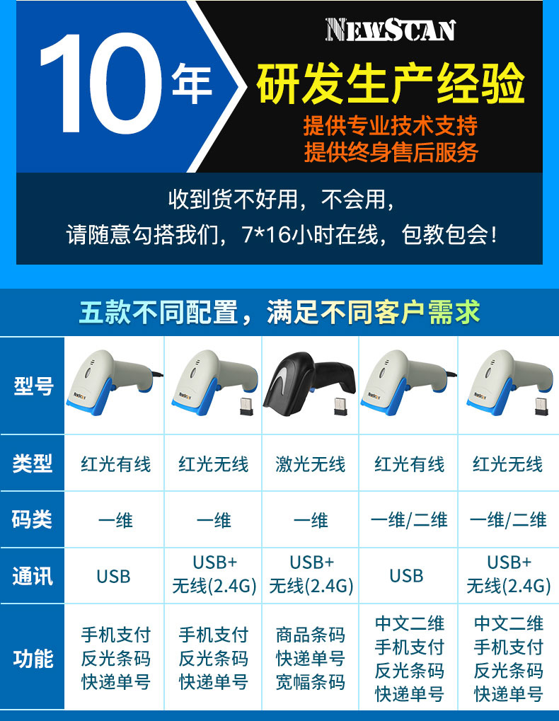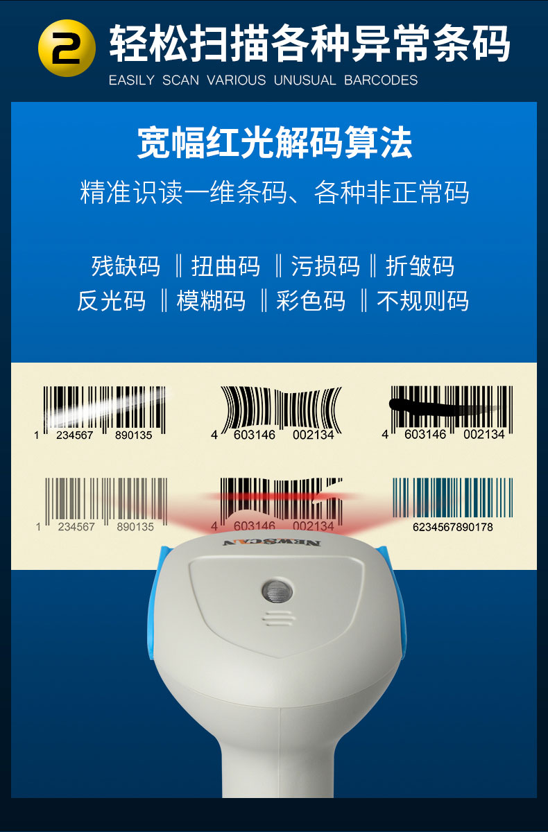 NEWSCAN扫码枪无线条码扫描器有线红光激光快递扫描微信二维码支付宝手机支付超市收银仓库盘点出入库扫描枪
