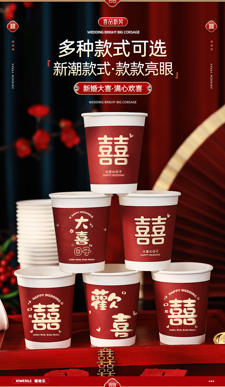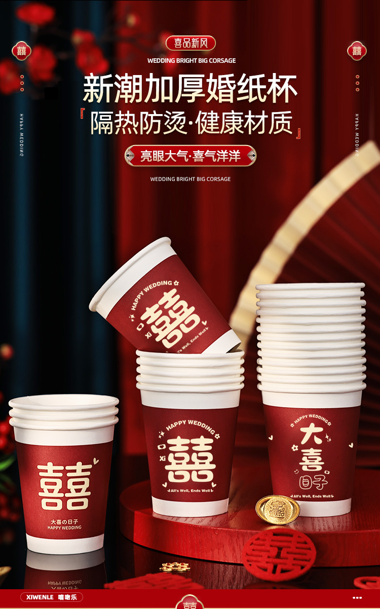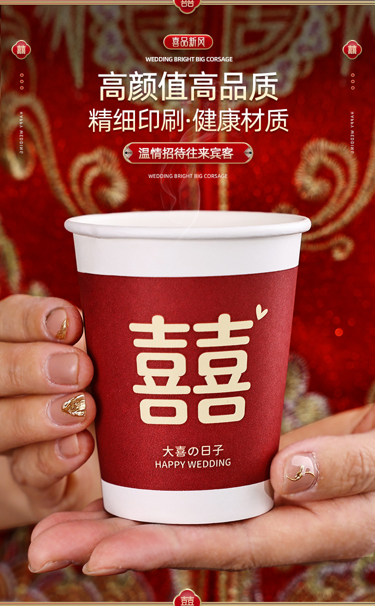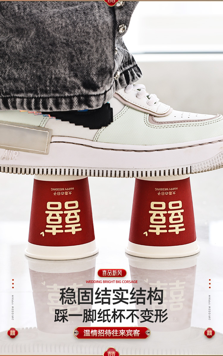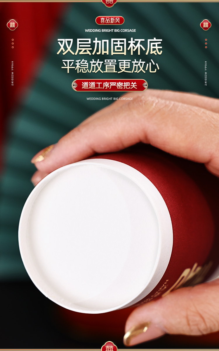 结婚纸杯敬茶杯一次性杯子婚礼用品大全喜杯子婚庆红色水杯红纸杯