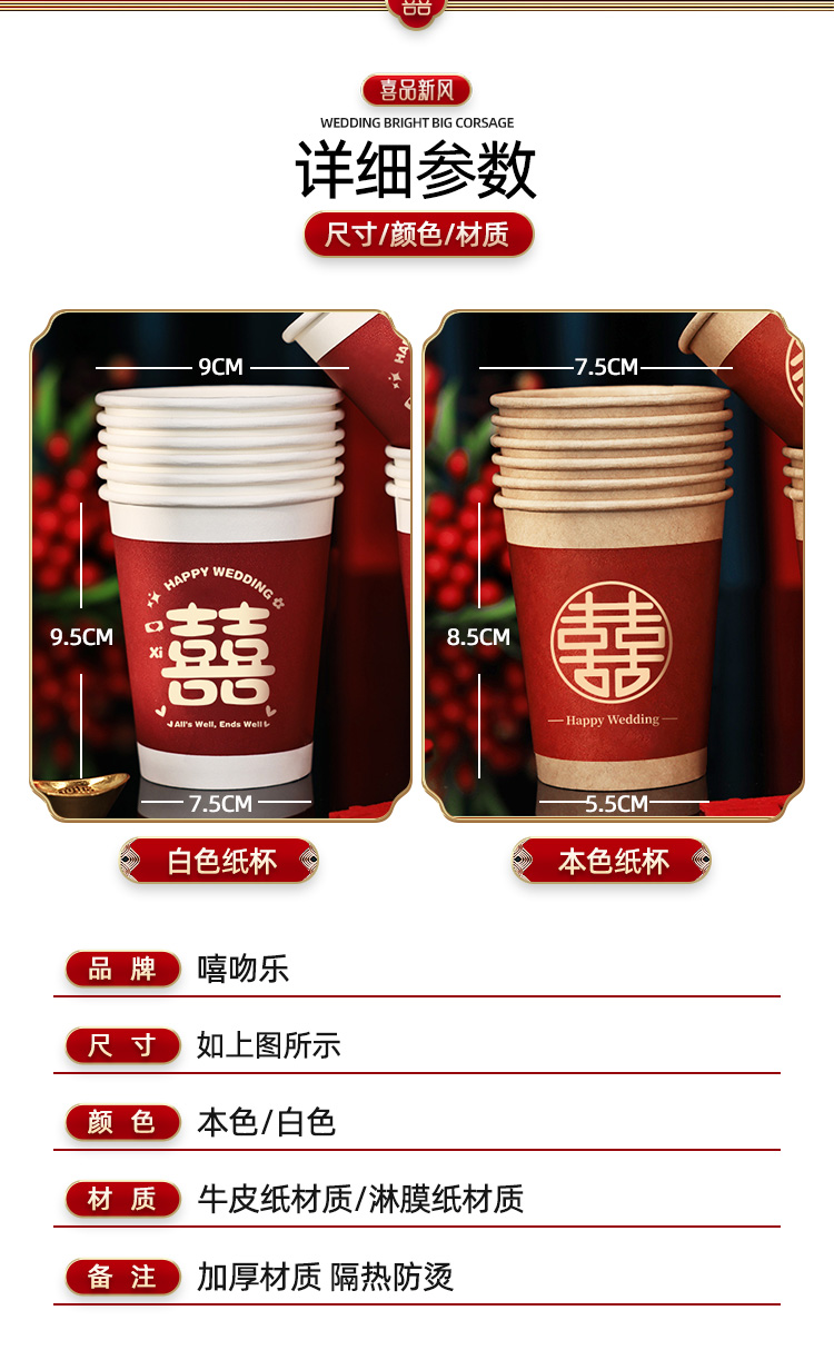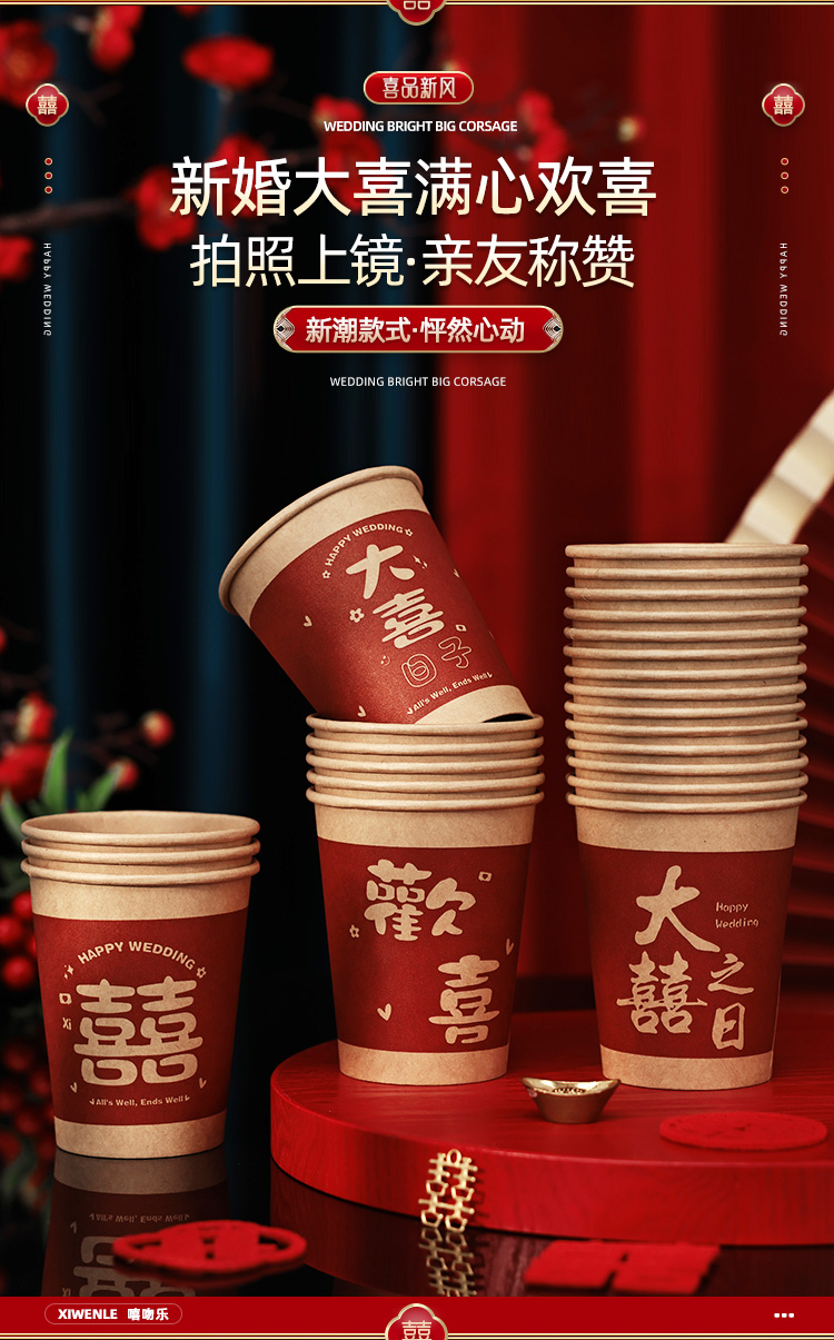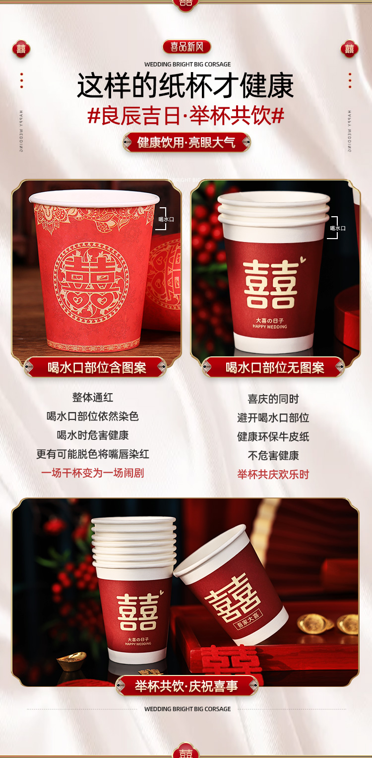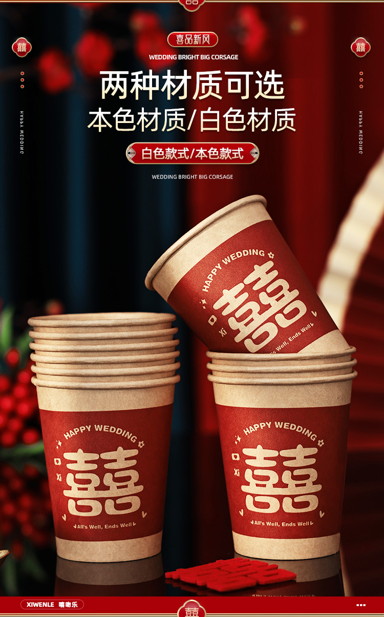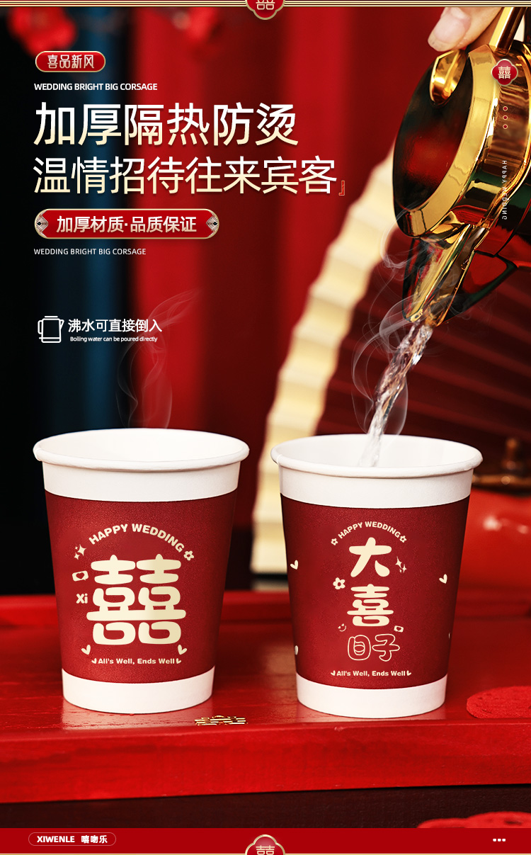 结婚纸杯敬茶杯一次性杯子婚礼用品大全喜杯子婚庆红色水杯红纸杯