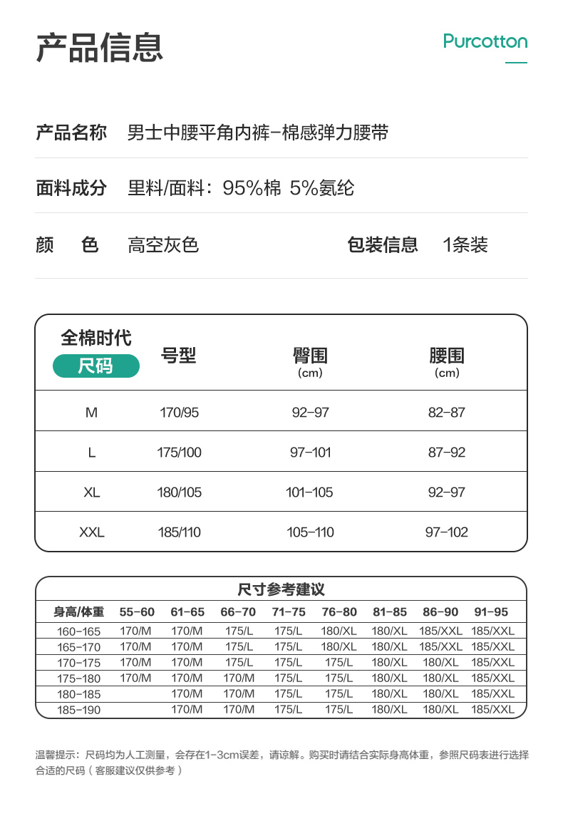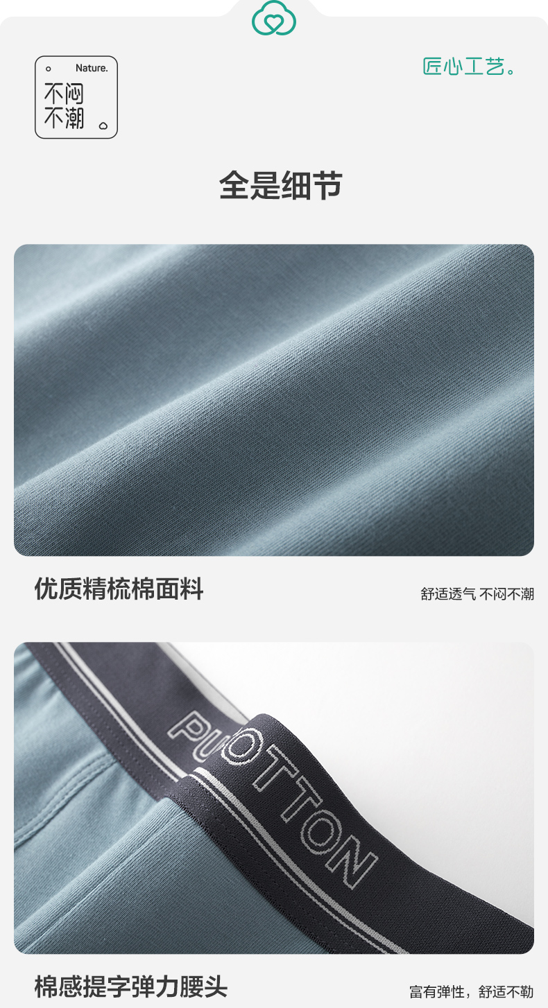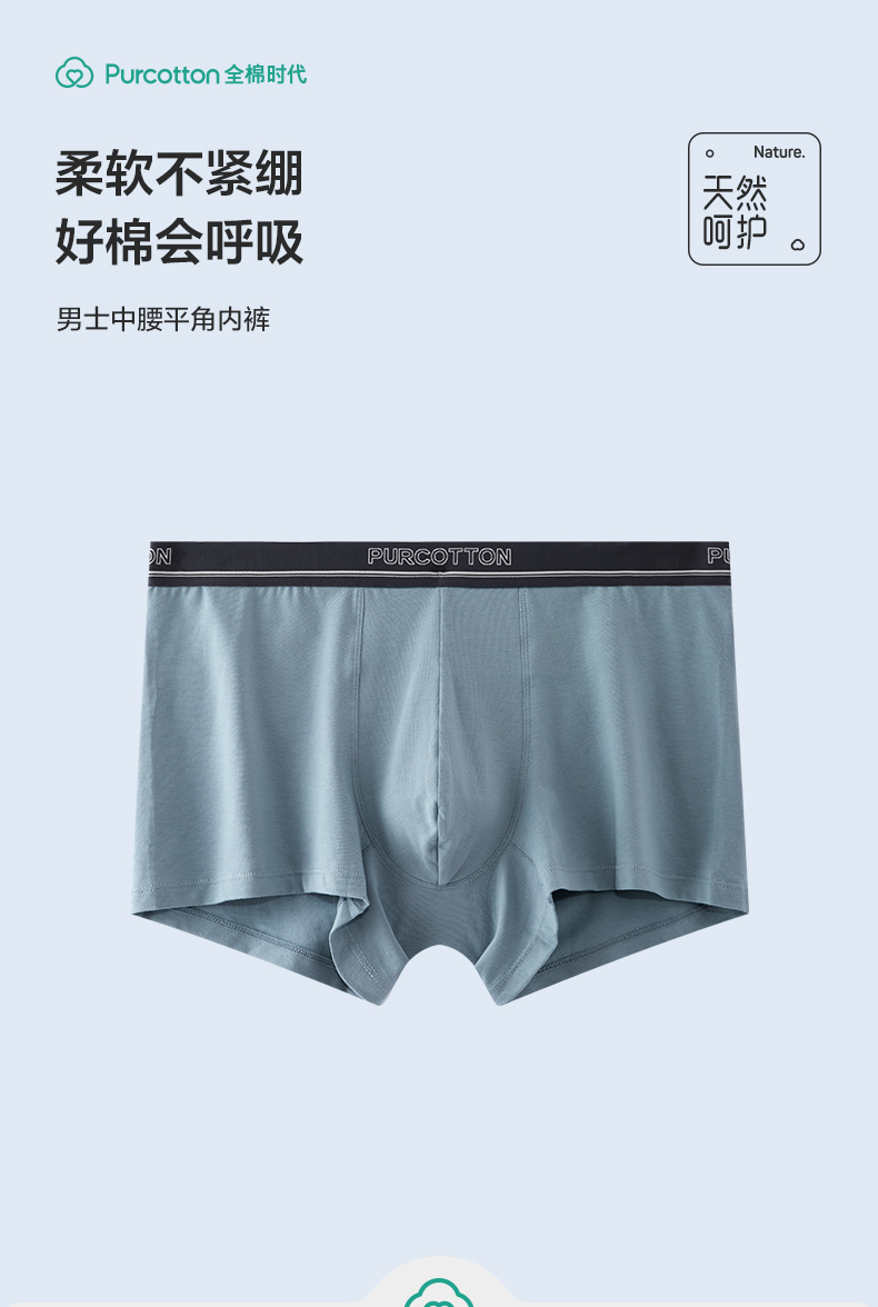 全棉时代男士纯棉内裤男生中腰平角四角裤透气