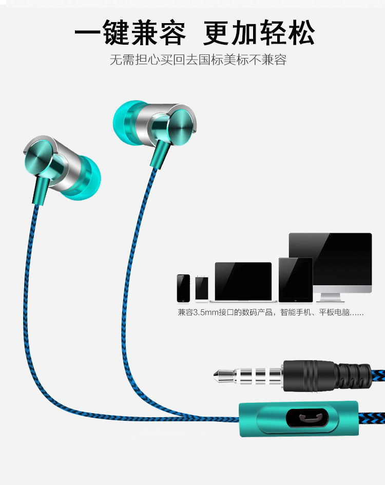 尼龙绳耳机有线耐磨损适用vivo华为OPPO小米华为有线入耳式高音质