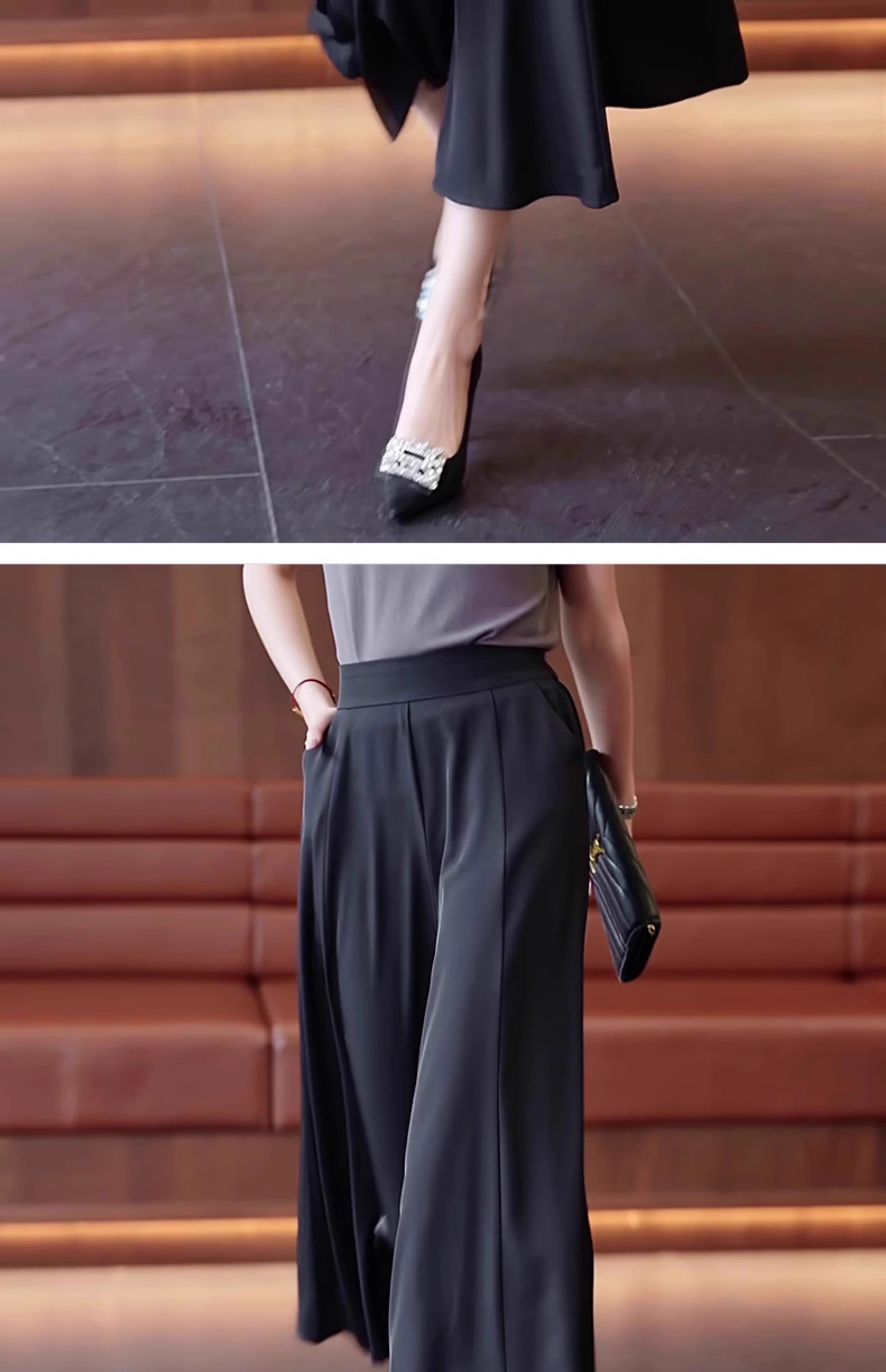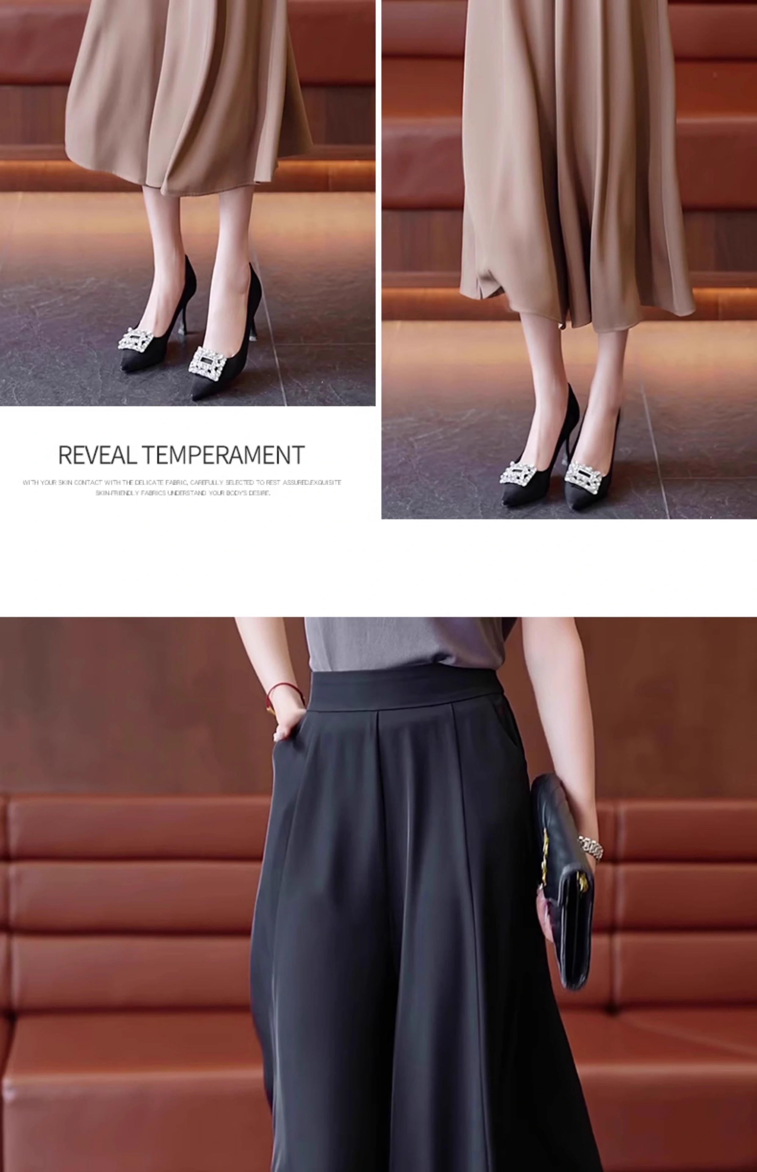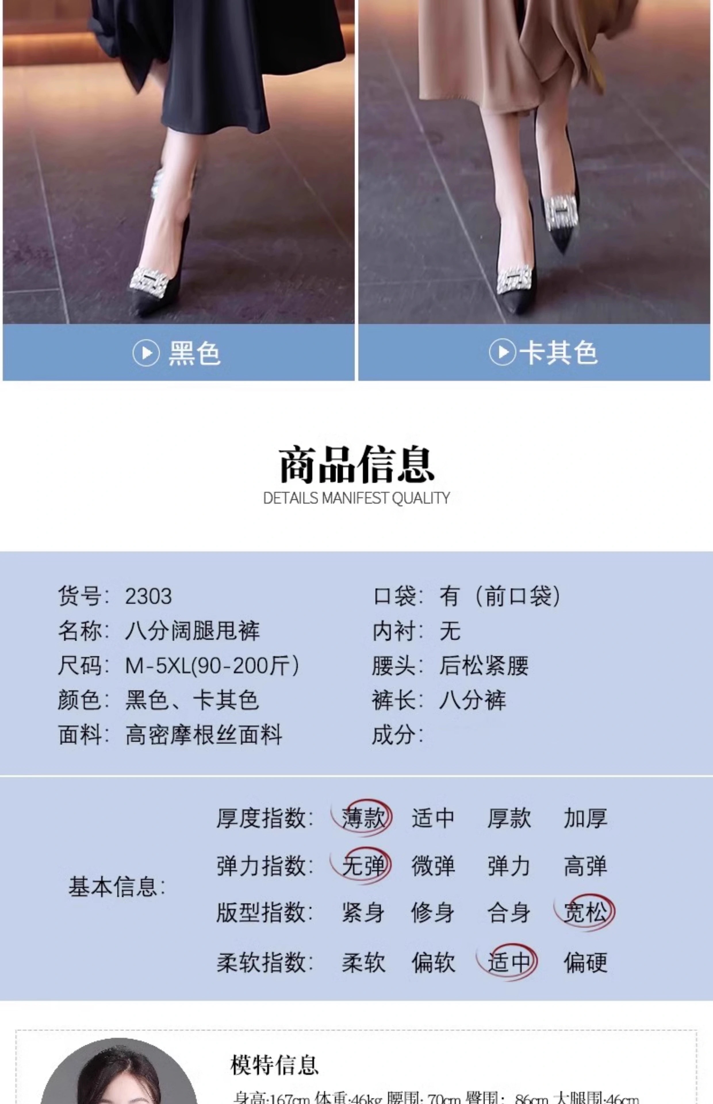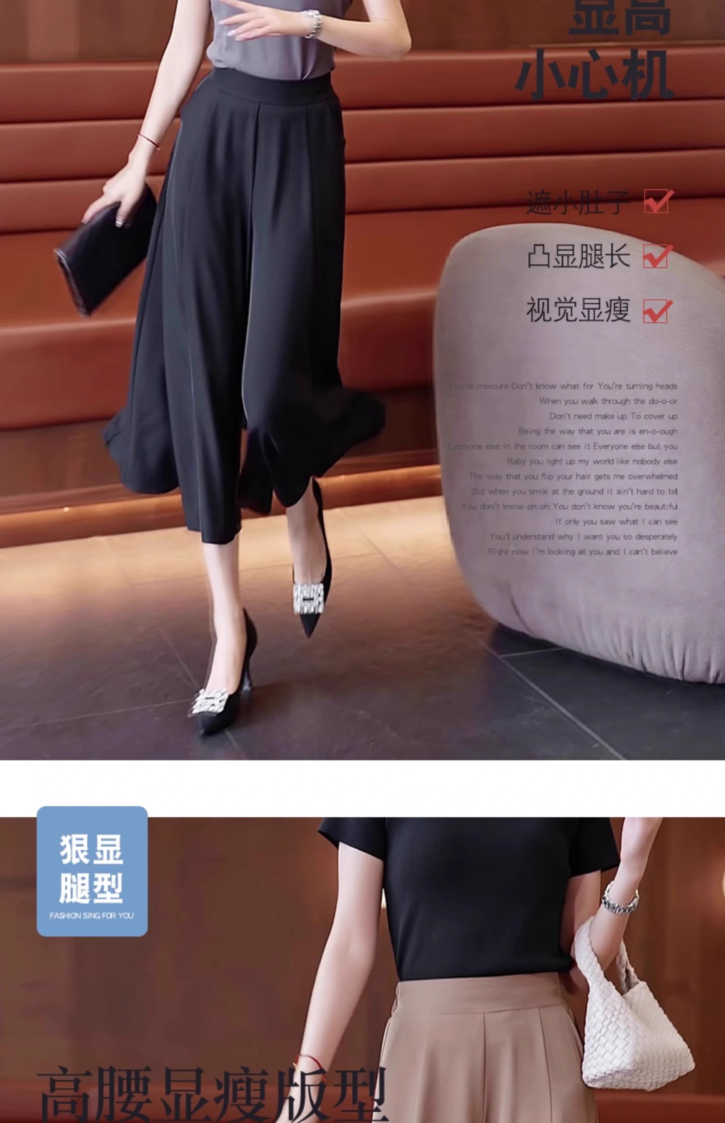 清仓捡漏~休闲冰丝七分阔腿裤女夏季薄款宽松高腰垂感妈妈裙裤子
