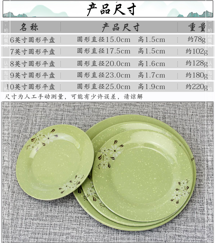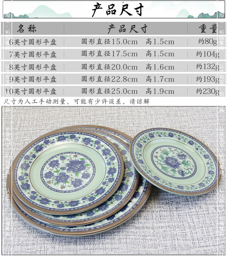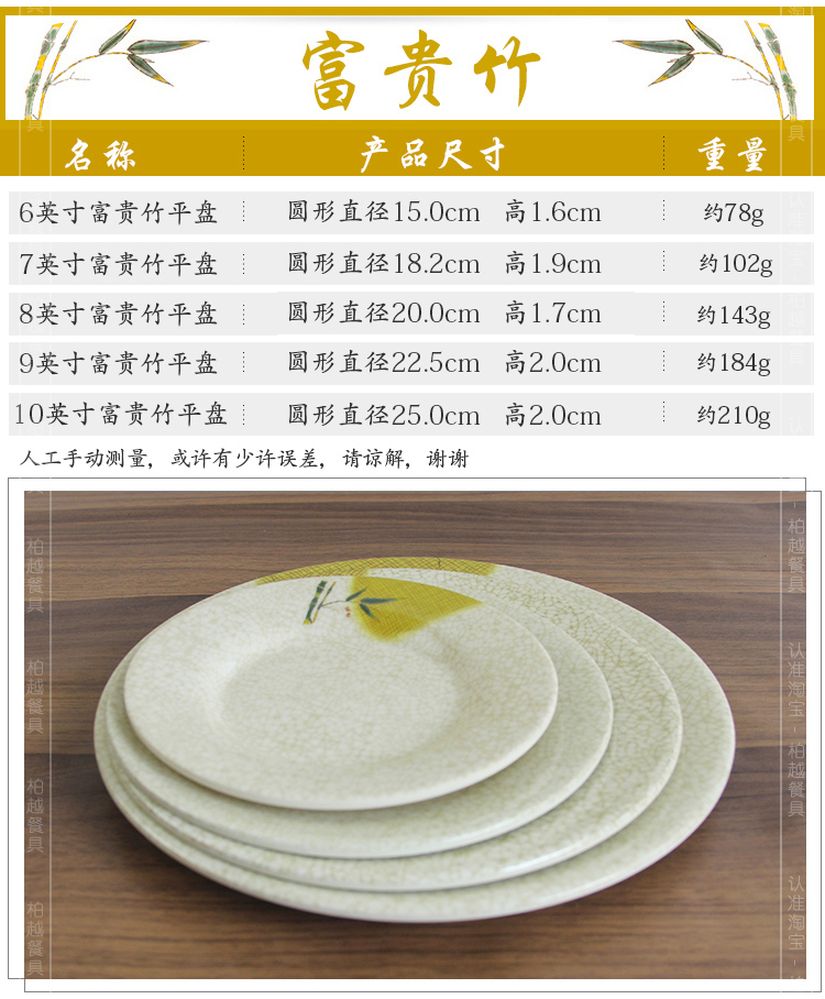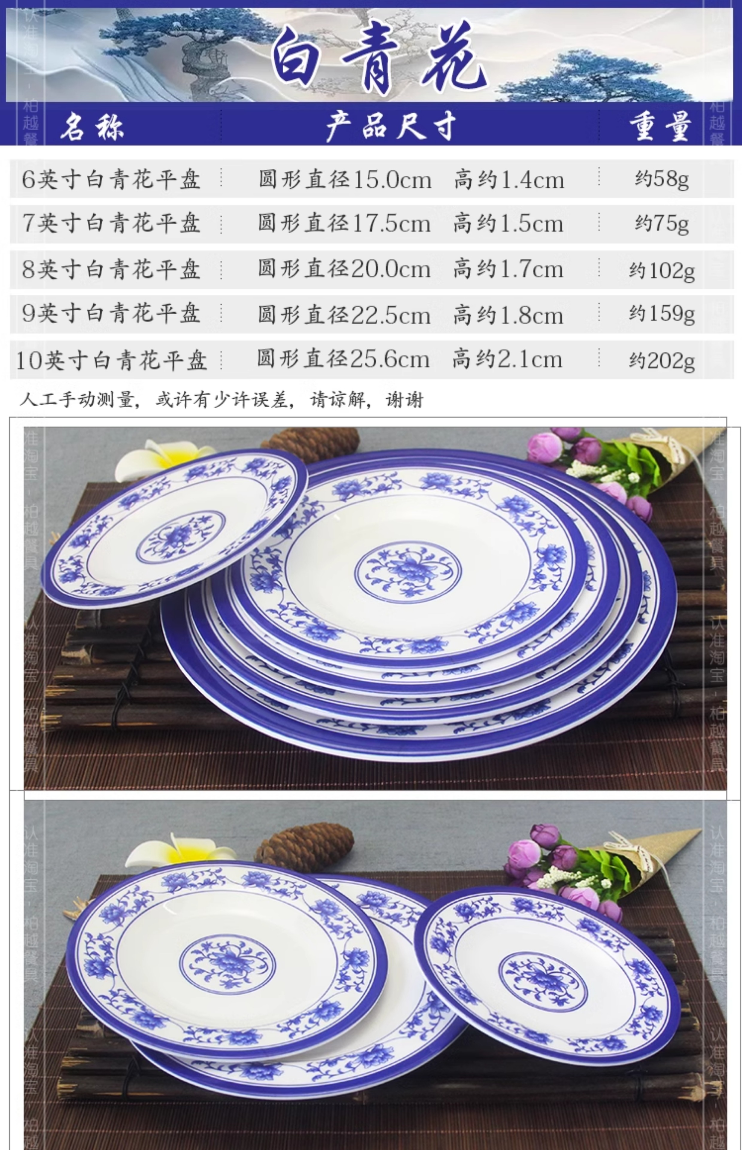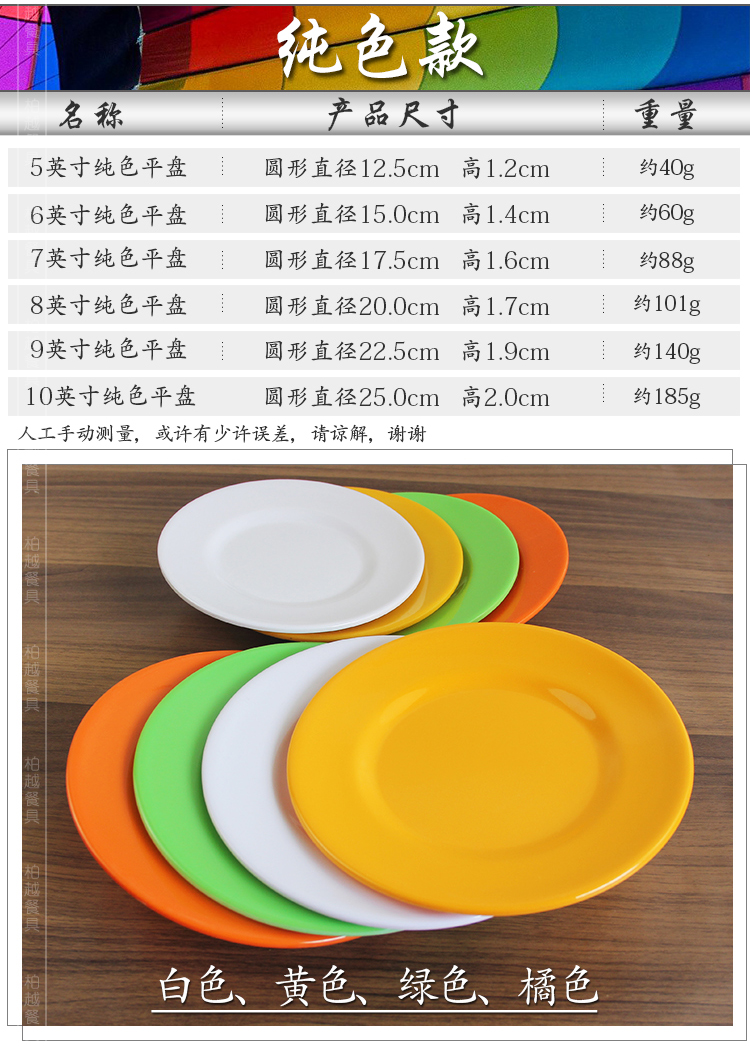 圆形盘子密胺菜盘彩色塑料碟子自助餐盘商用仿瓷小吃碟凉菜碟骨碟