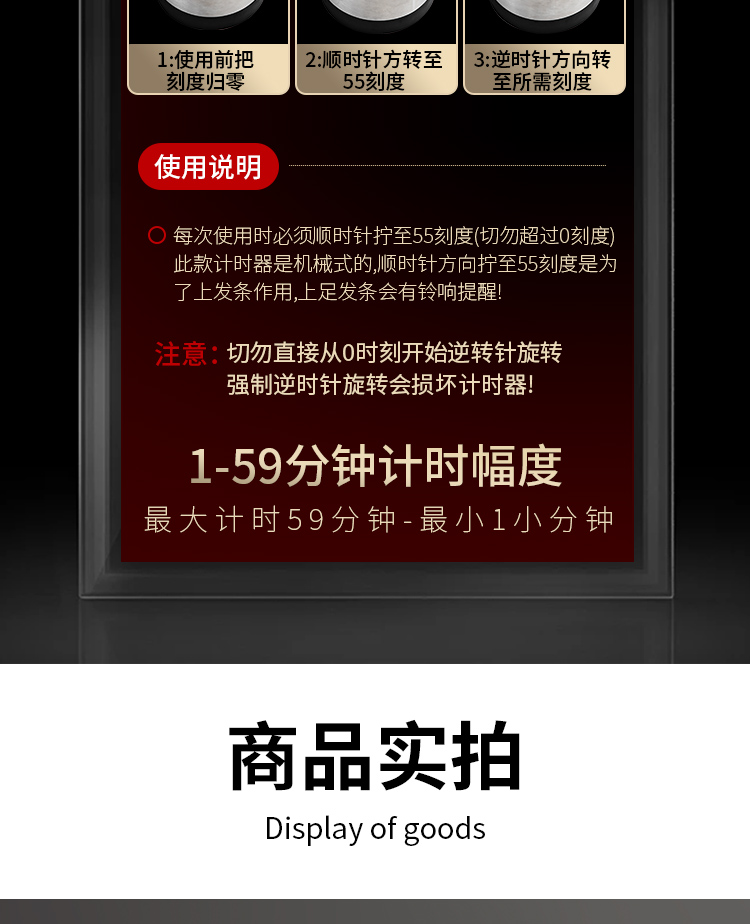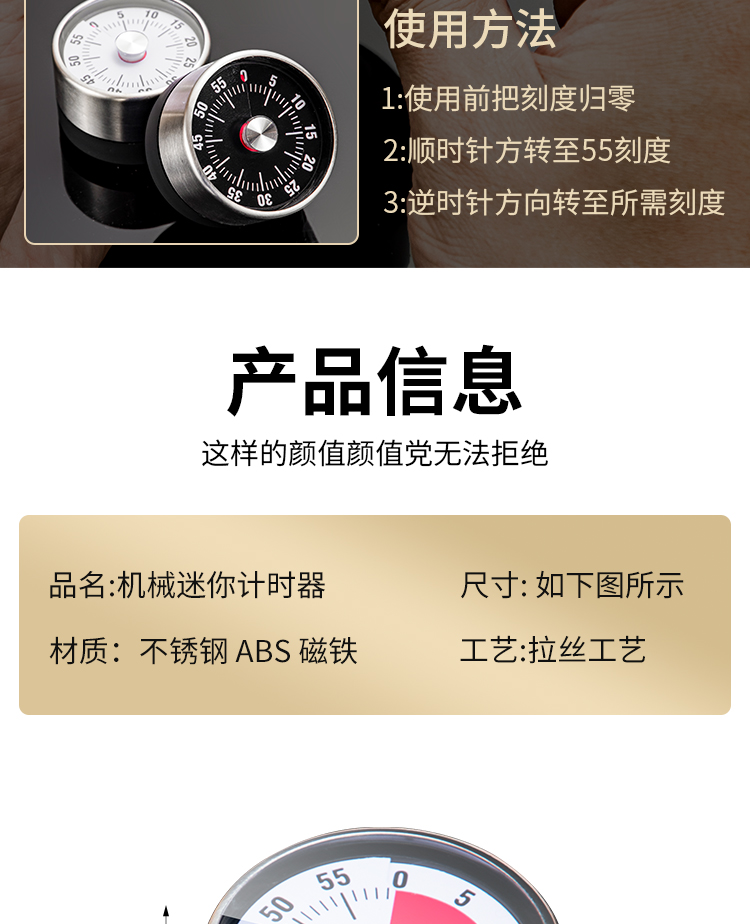 定时器闹钟烹饪提醒器学生计时器自律神器厨房做饭定时机械钟磁吸