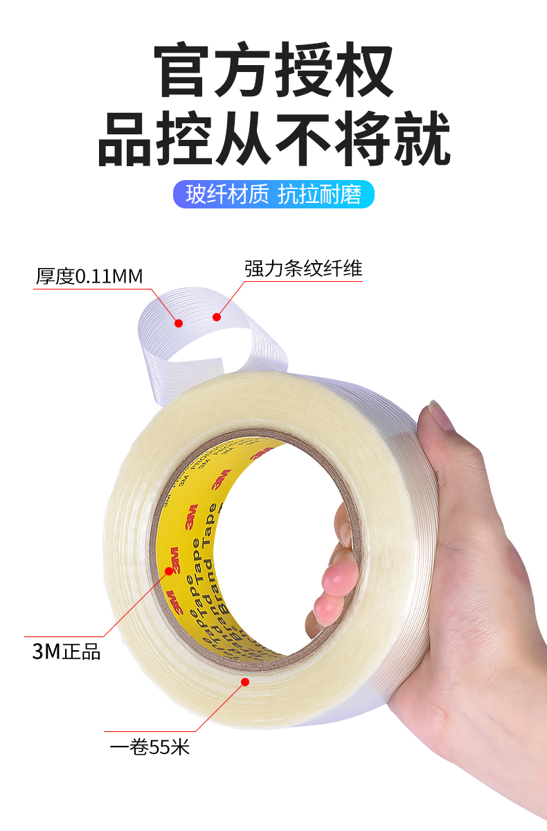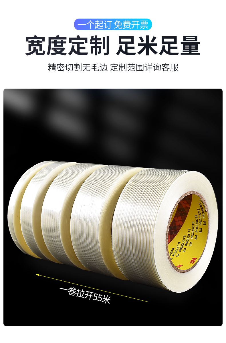 3m纤维胶带3M8934强力条纹单面透明玻璃纤维胶带无痕高粘电器冰箱空调固定不留痕电子固定强力胶带不残胶55米
