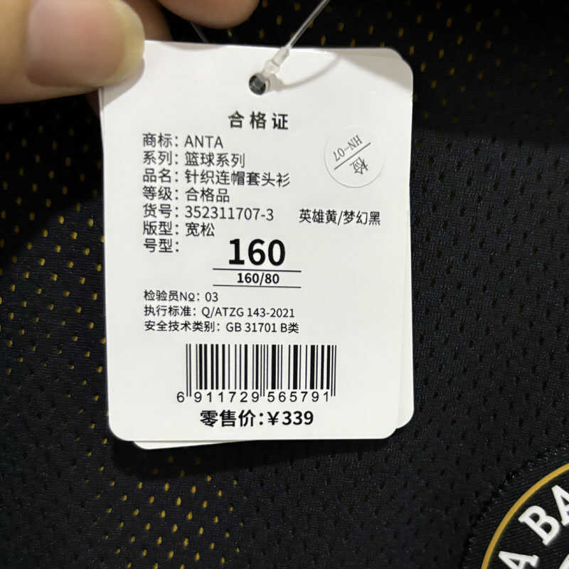 安踏儿童正品春秋针织连帽套头衫男童卫衣空气层上衣352311707