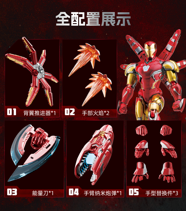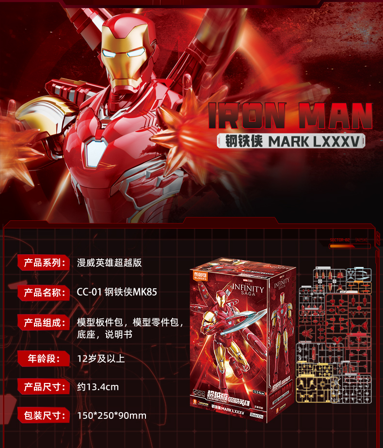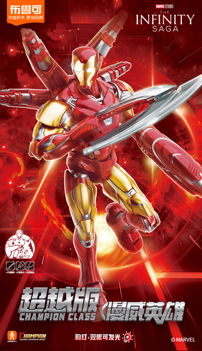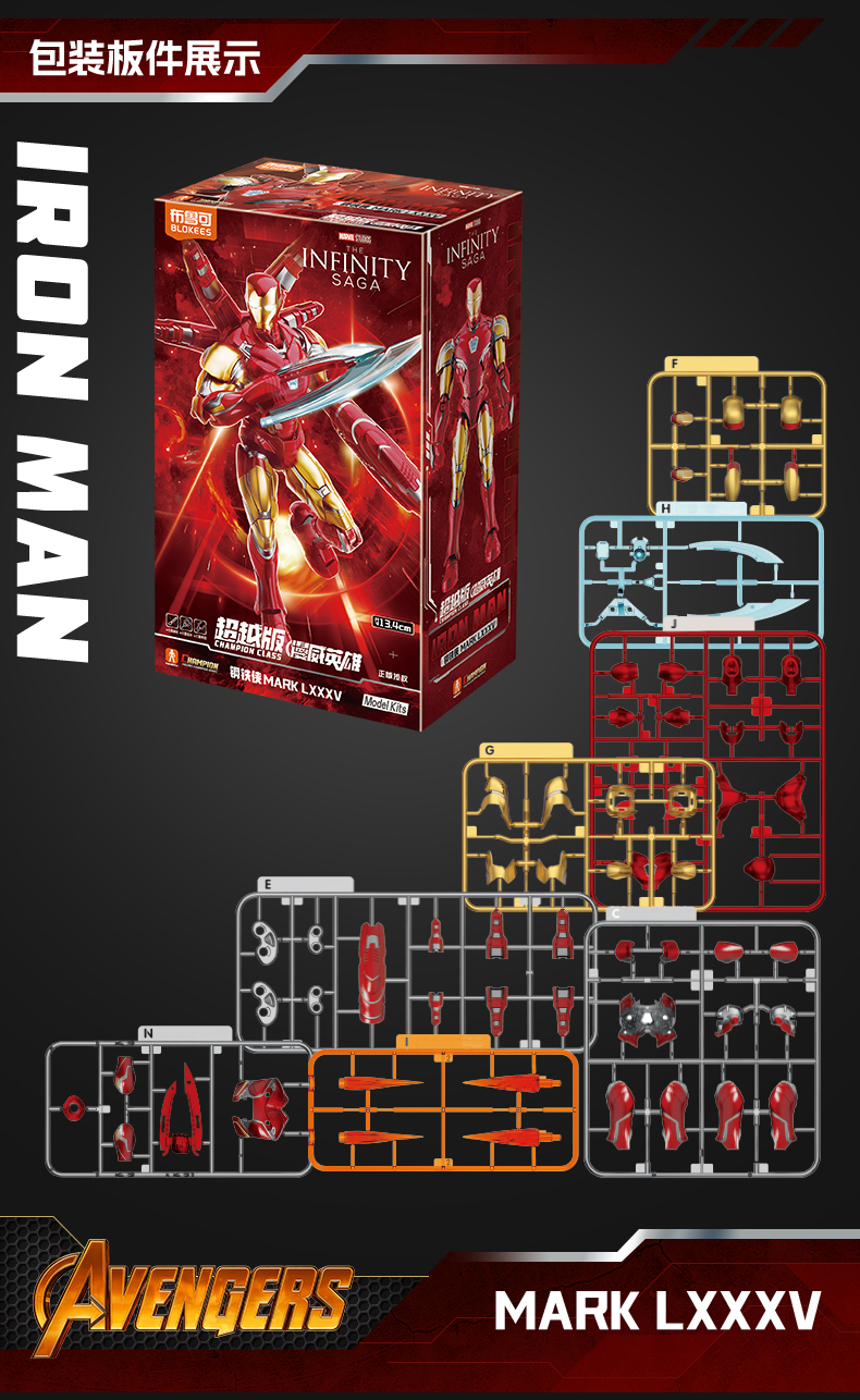 布鲁可漫威英雄钢铁侠mk85超越版积木人雷神模型手办摆件玩具克