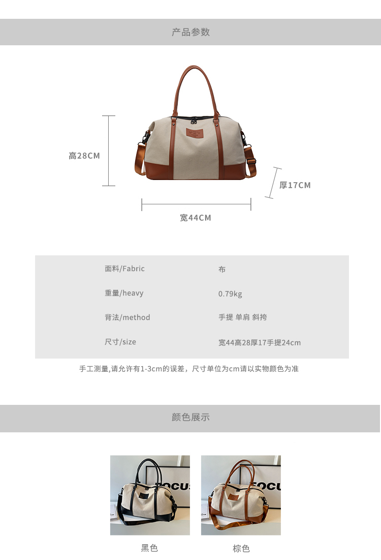 旅行包女轻便行李包短途出差大容量帆布手提包外出旅游健身托特包